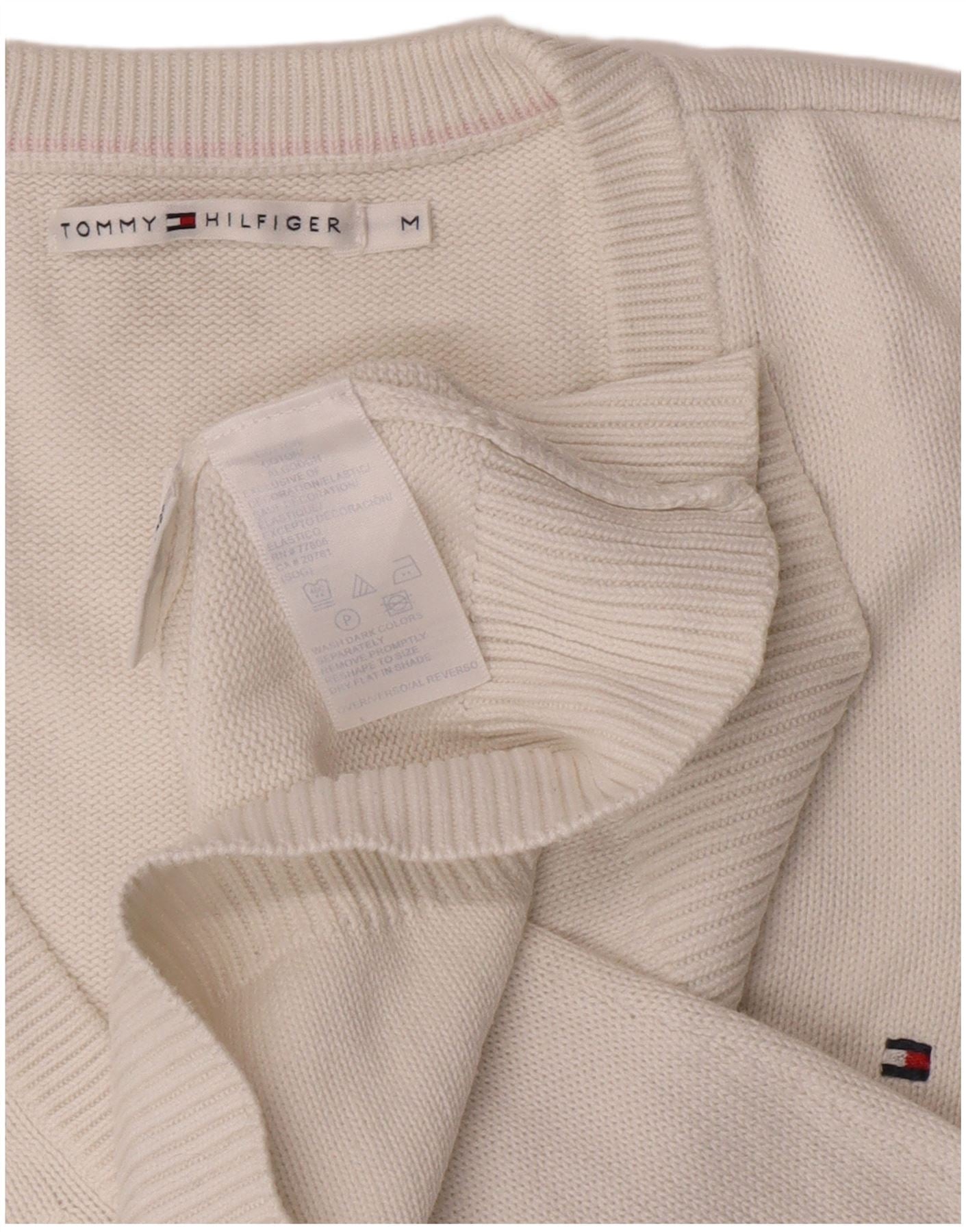 Tommy Hilfiger Dame V-hals sweater UK 14 Medium Hvid Bomuld