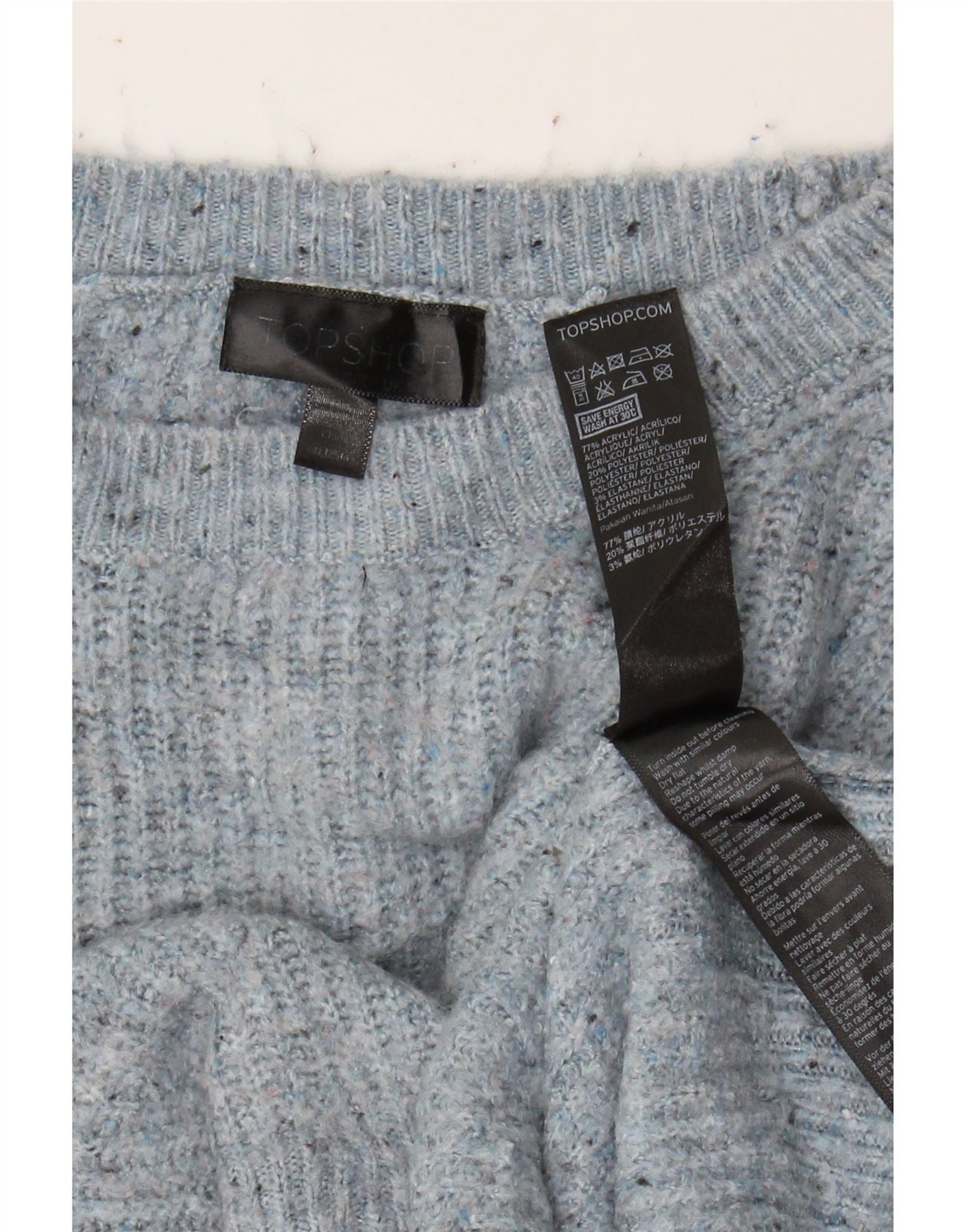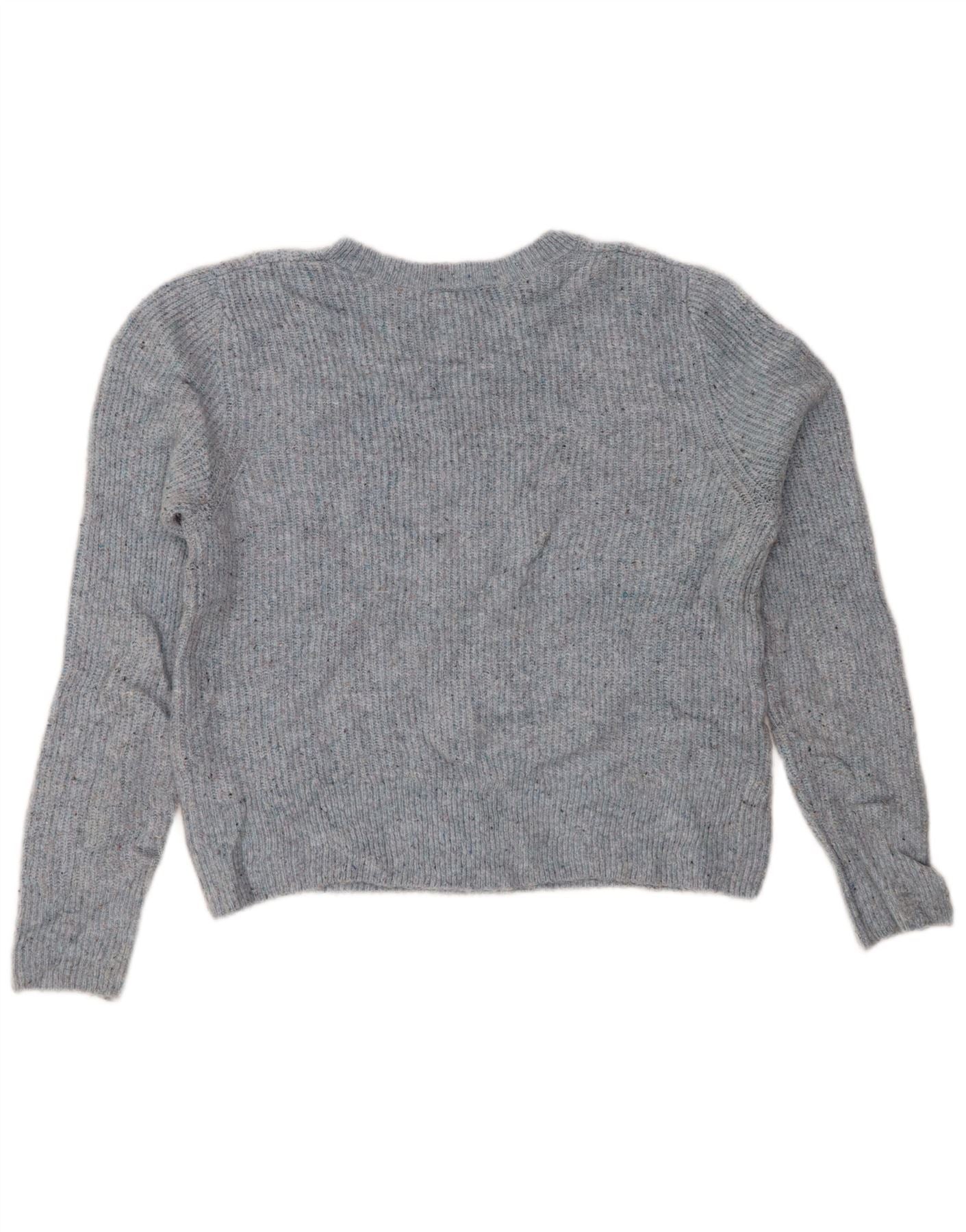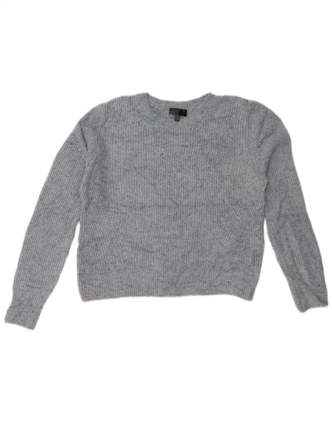 TOPSHOP Womens Crop Crew Neck Jumper Sweater UK 14 Large Blue Flecked