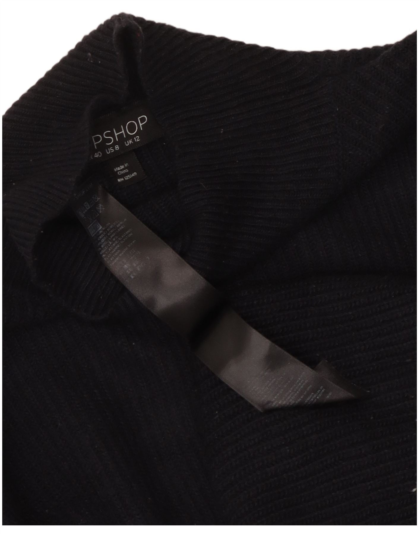 Topshop Dame Crop Turtle Neck Jumper Sweater UK 12 Medium Navy Blue Nylon