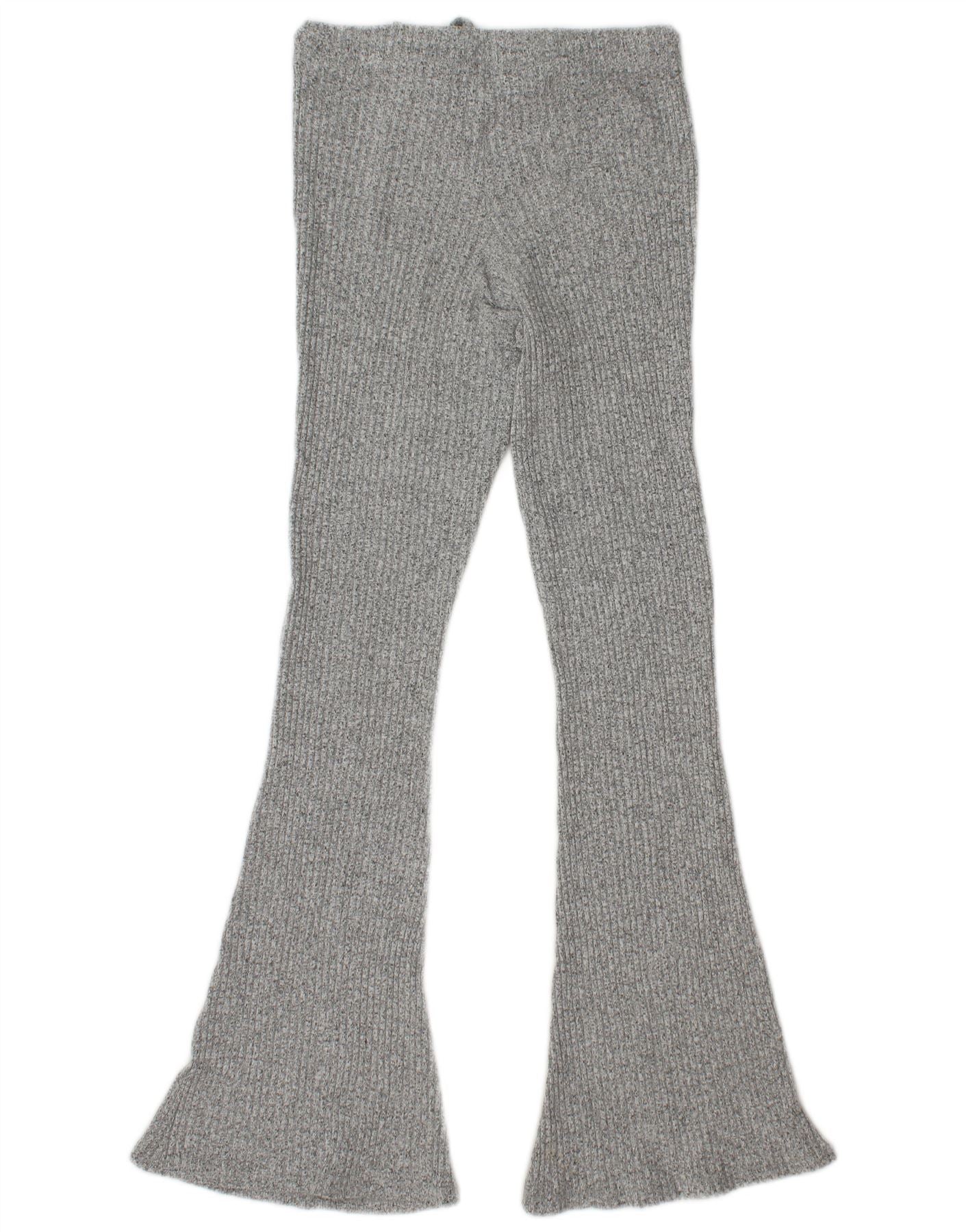 TOPSHOP Womens Knit Flare Casual Trousers UK 8 Small W26 L29 Grey Viscose