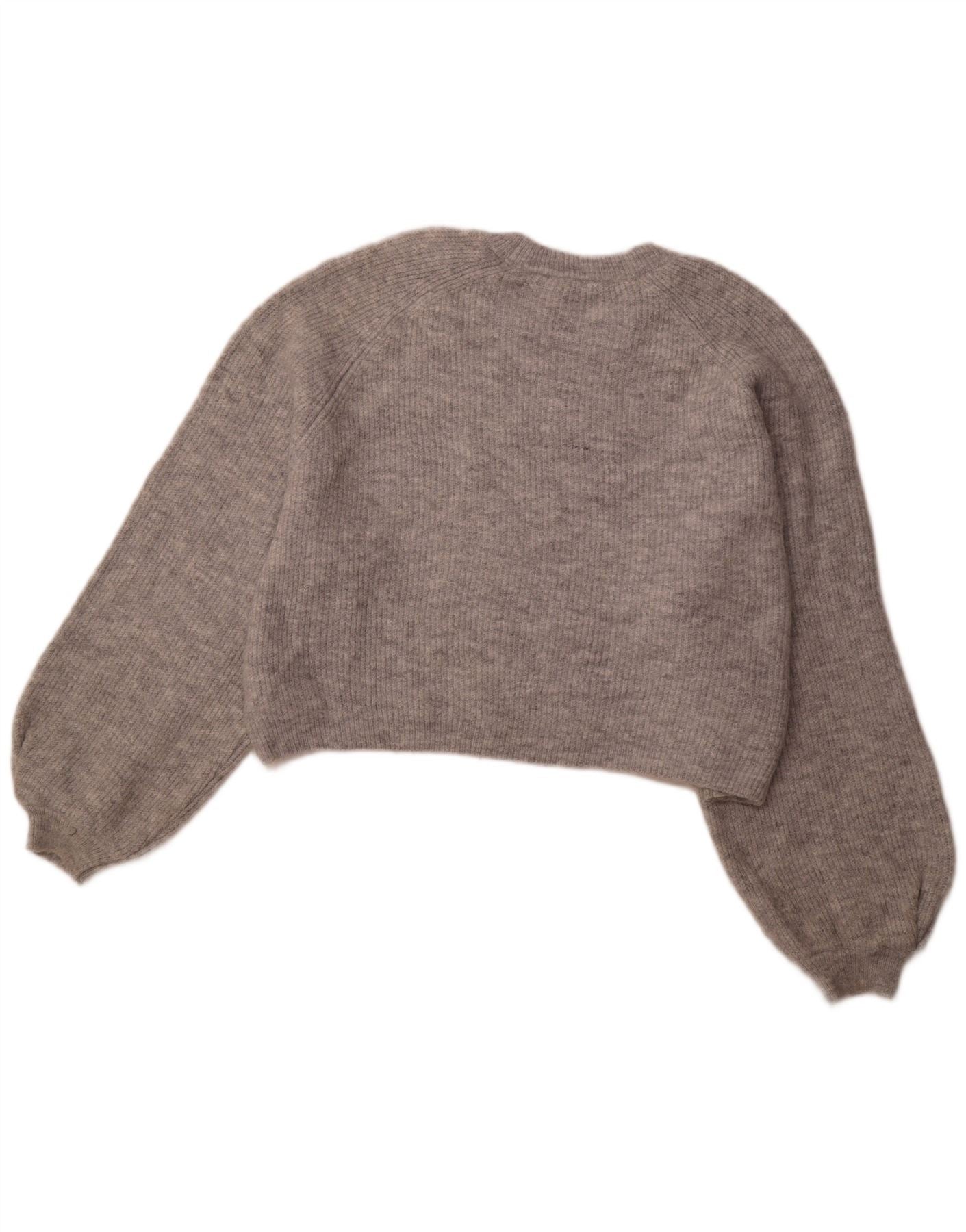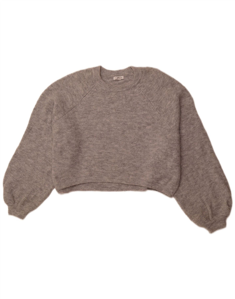 TOPSHOP Womens Oversized Crop Boat Neck Jumper Sweater UK 16 Large Grey