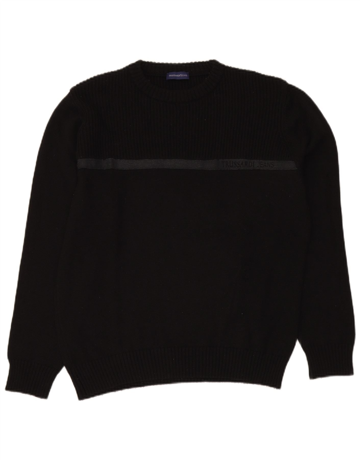 TRUSSARDI JEANS Herre sweater med rund hals, medium sort uld