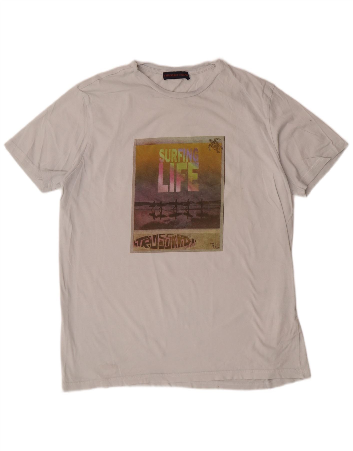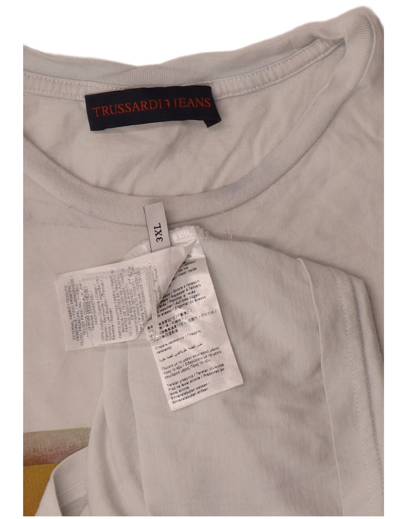 TRUSSARDI JEANS Herre grafisk T-shirt top 3XL hvid bomuld