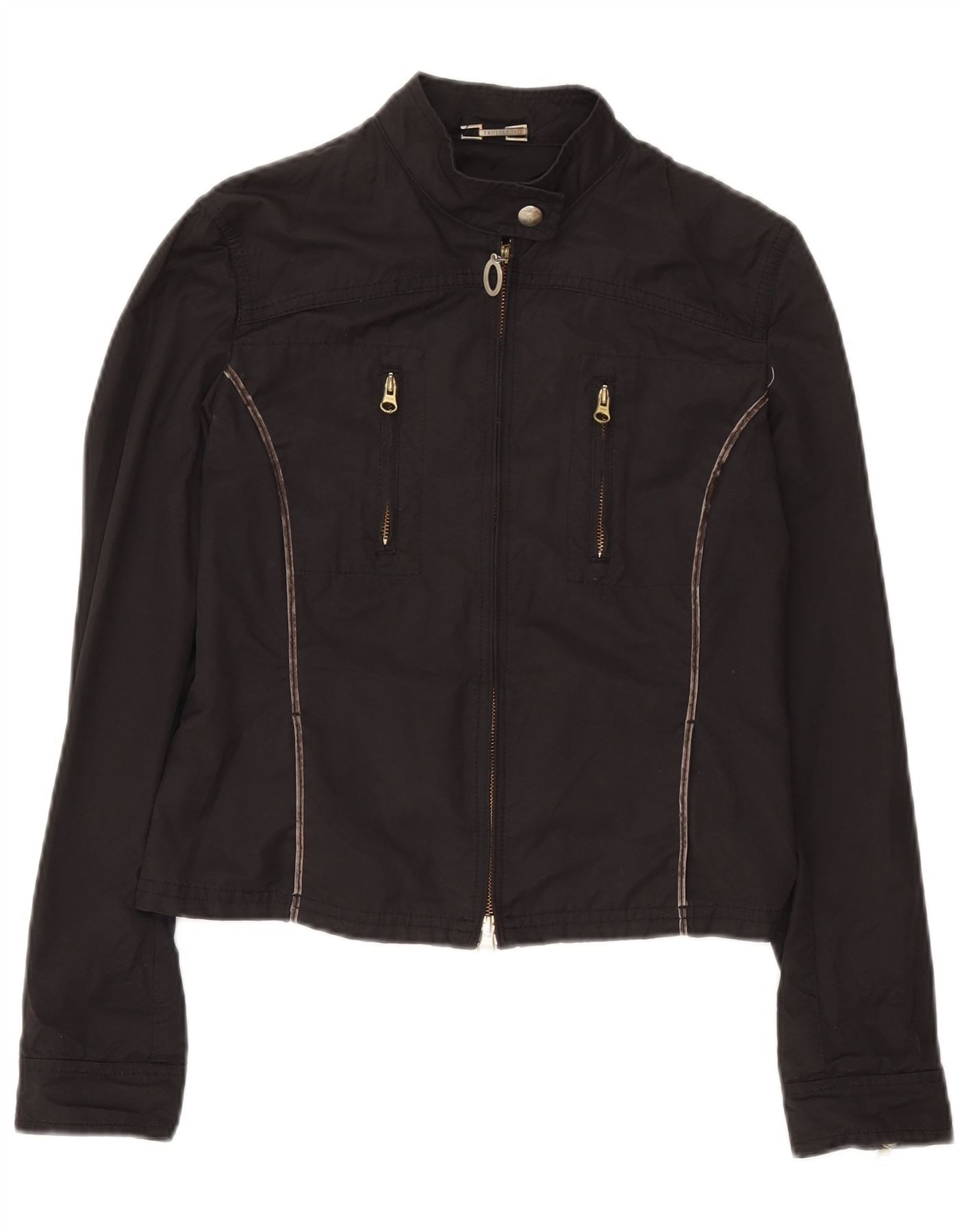 Trussardi Jeans Dame Crop Bomber Jacket IT 46 Stor Sort Bomuld
