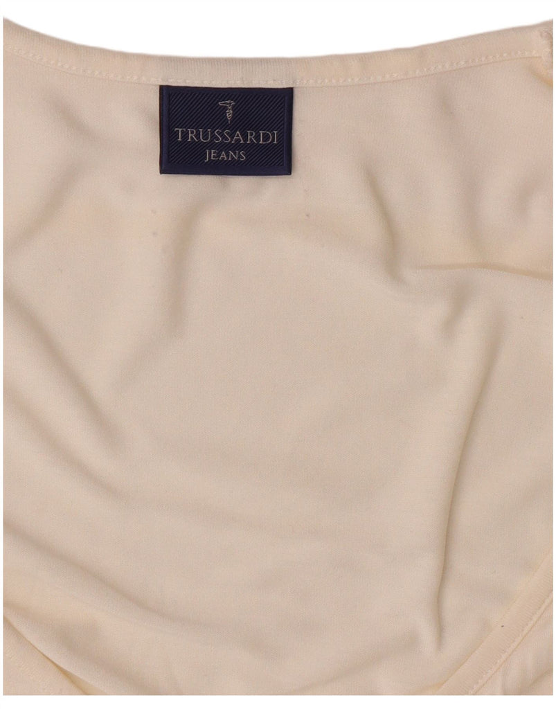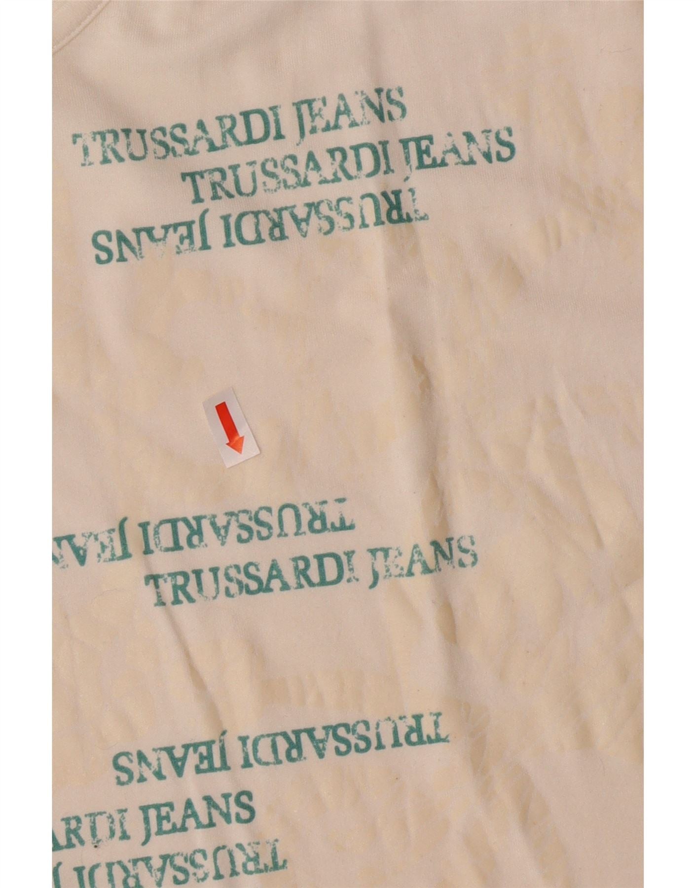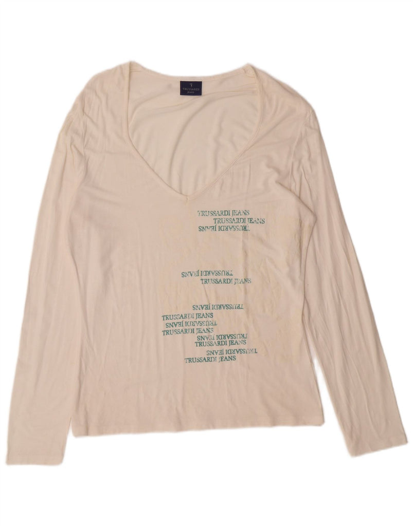 TRUSSARDI JEANS Dame Grafisk Top Langærmet UK 16 Large Off White