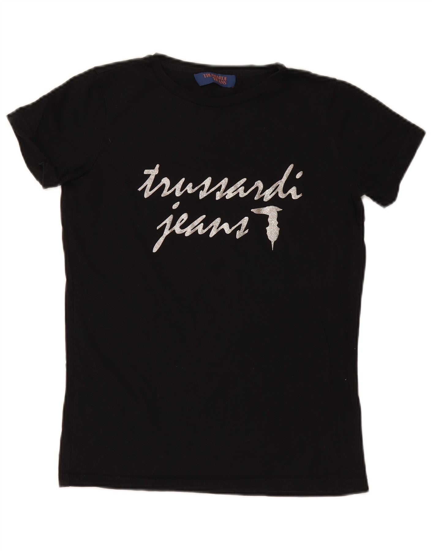 TRUSSARDI JEANS Dame Oversized grafisk T-shirt top UK 2 2XS Sort