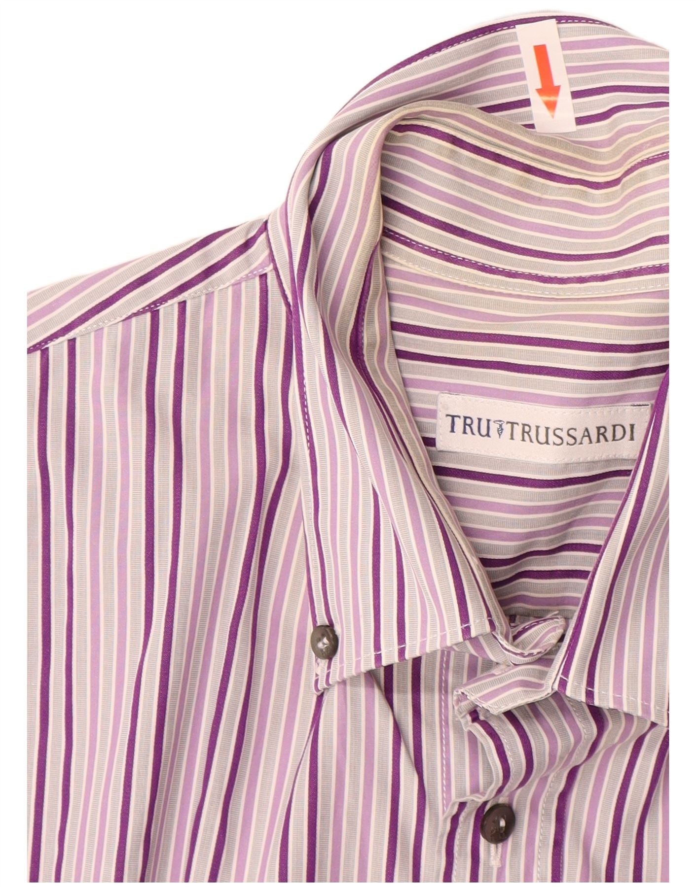 Trussardi Kortærmet Herreskjorte Størrelse 42 Stor Lilla Stribet