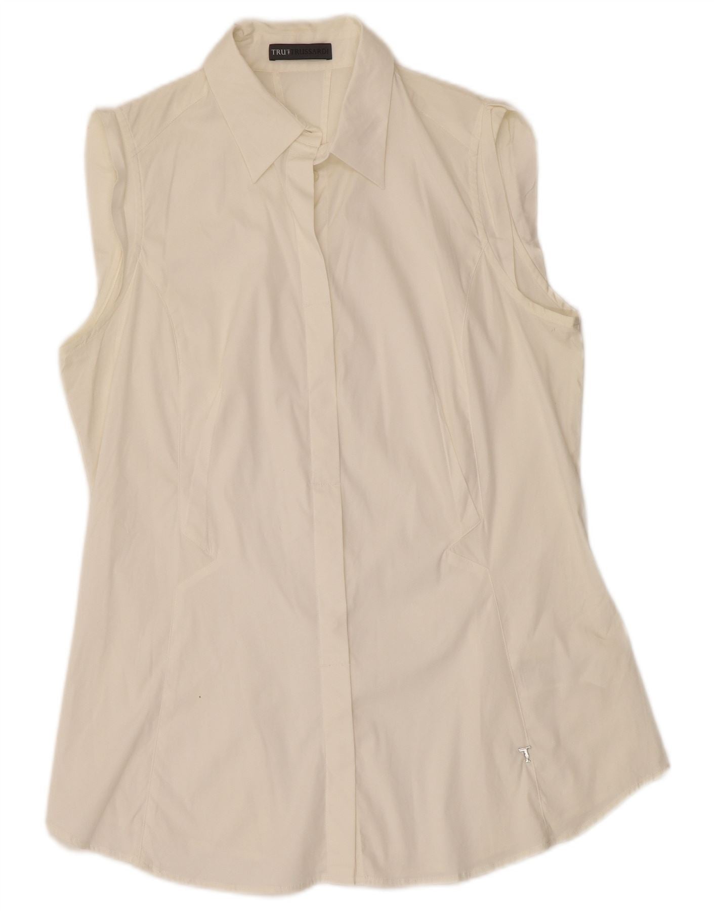 TRUSSARDI ærmeløs skjorte til kvinder UK 18 XL Hvid bomuld