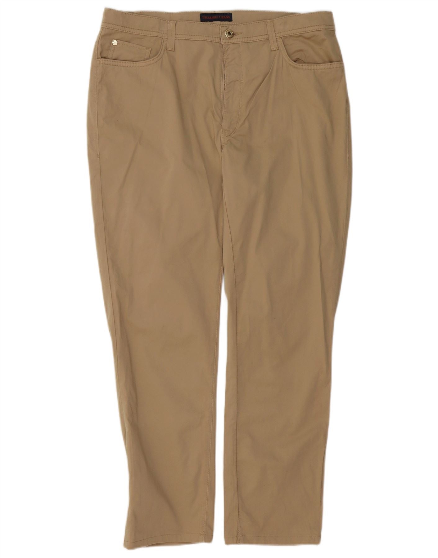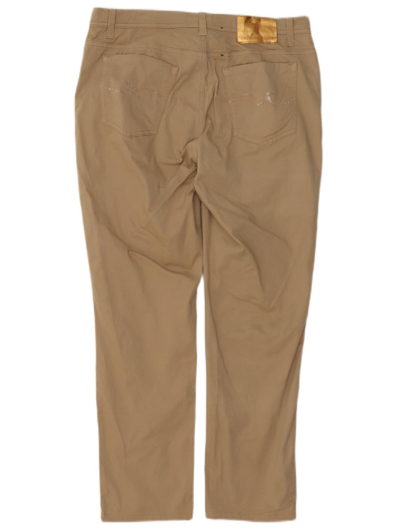 TRUSSARDI Womens Slim Casual Trousers IT 49 XL W35 L28 Brown Cotton