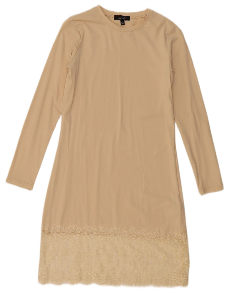 TWINSET Girls Long Sleeve Tunic Dress 11-12 Years Beige Floral Cotton