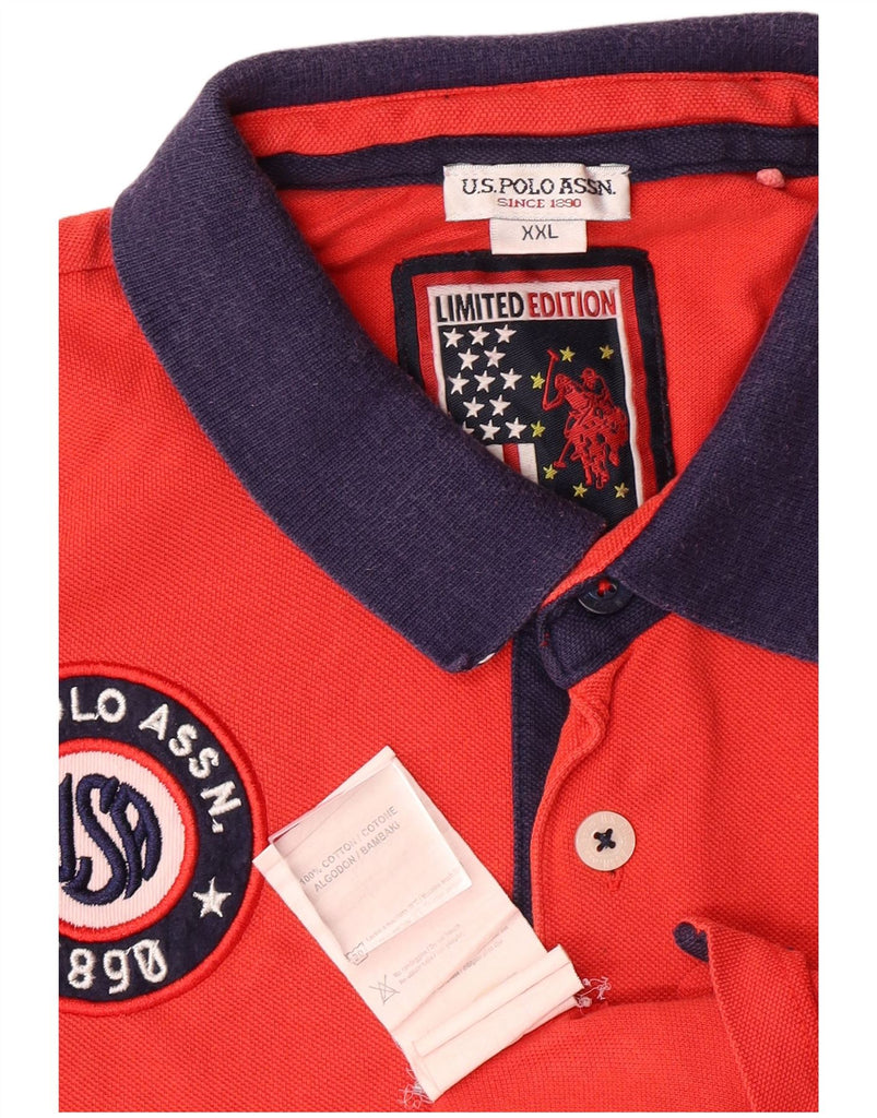 U.S. POLO ASSN. Herre grafisk poloshirt 2XL Orange Colourblock Bomuld