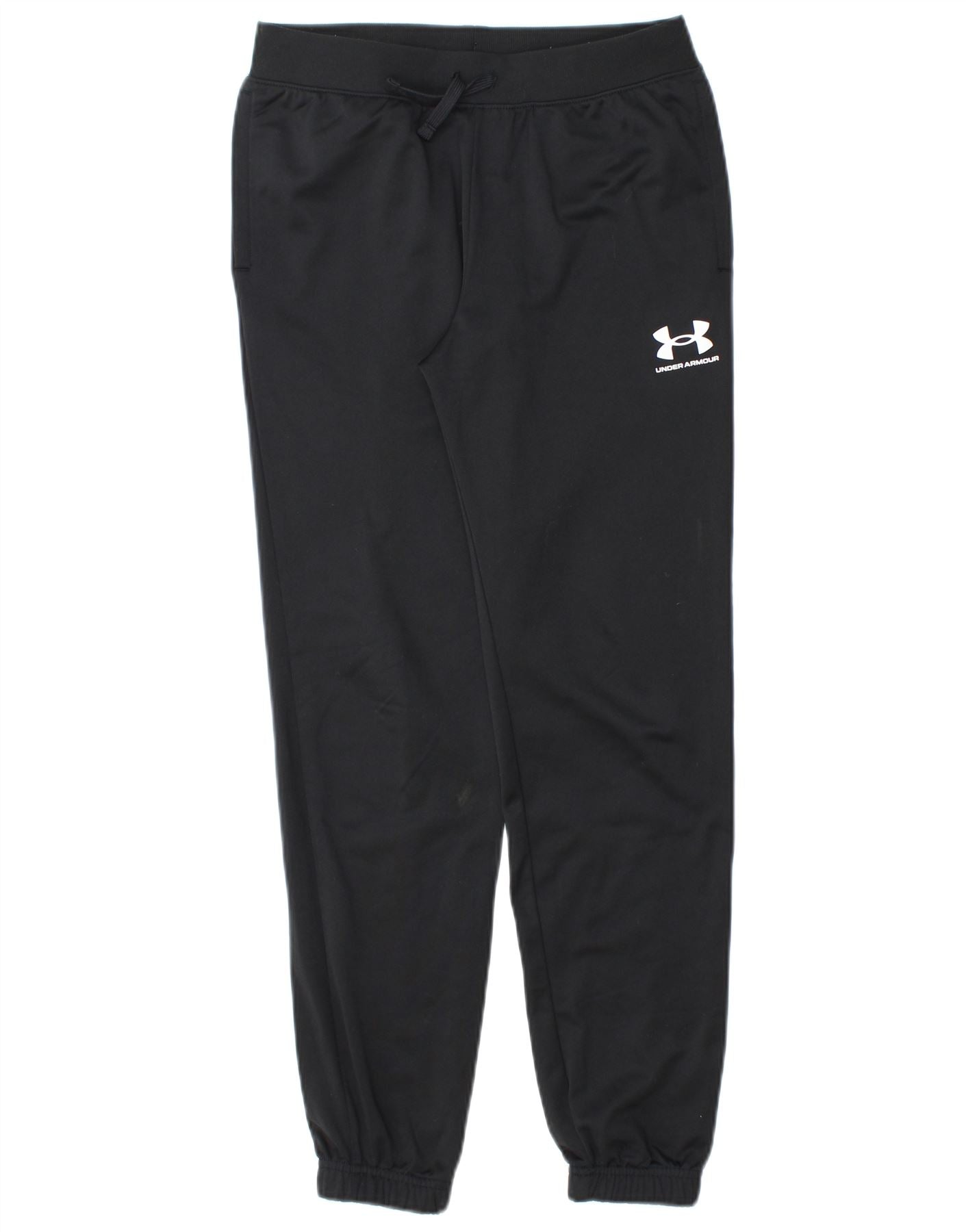 - AI beskrivelse: Disse Under Armour træningsbukser til drenge er lavet af glat sort polyesterjersey. De har en behagelig pull-on stil med en elastisk talje og snøre for en justerbar pasform. Den almindelige pasform giver nem bevægelse. Ankler med manchetter giver en pæn finish. Sidelommer tilføjer funktionalitet. Et fremtrædende hvidt Under Armour-logo på benet giver et karakteristisk atletisk præg.