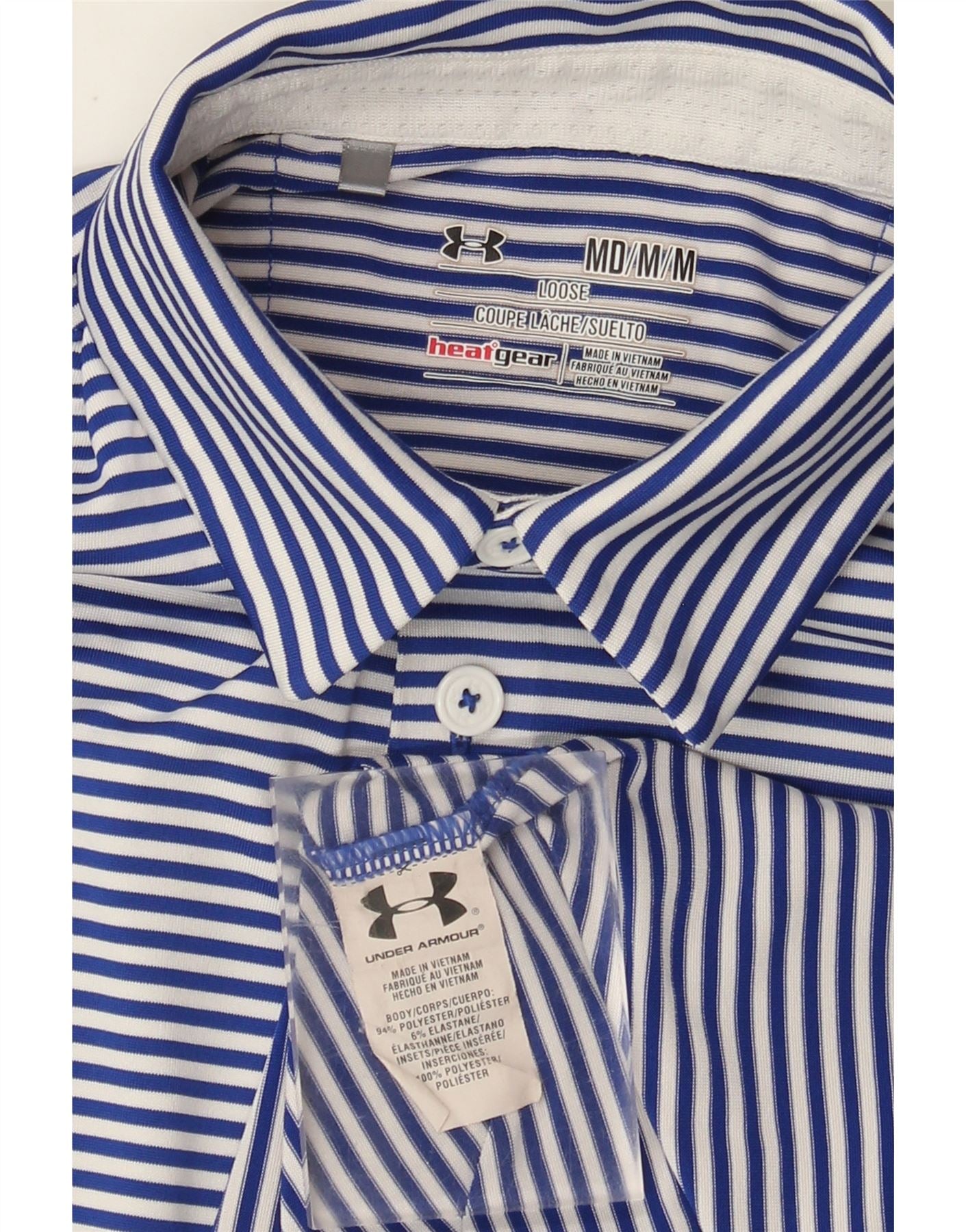 - AI beskrivelse: Denne Under Armour herre poloshirt er lavet af en åndbar polyesterblanding, der tilbyder stretch og komfort. Den har en klassisk halsudskæring og en stolpe med knap. Det blå- og hvidstribede mønster giver et smart, atletisk look. Korte ærmer og en atletisk pasform sikrer nem bevægelse, ideel til golf. Et subtilt Under Armour-logo fuldender designet.