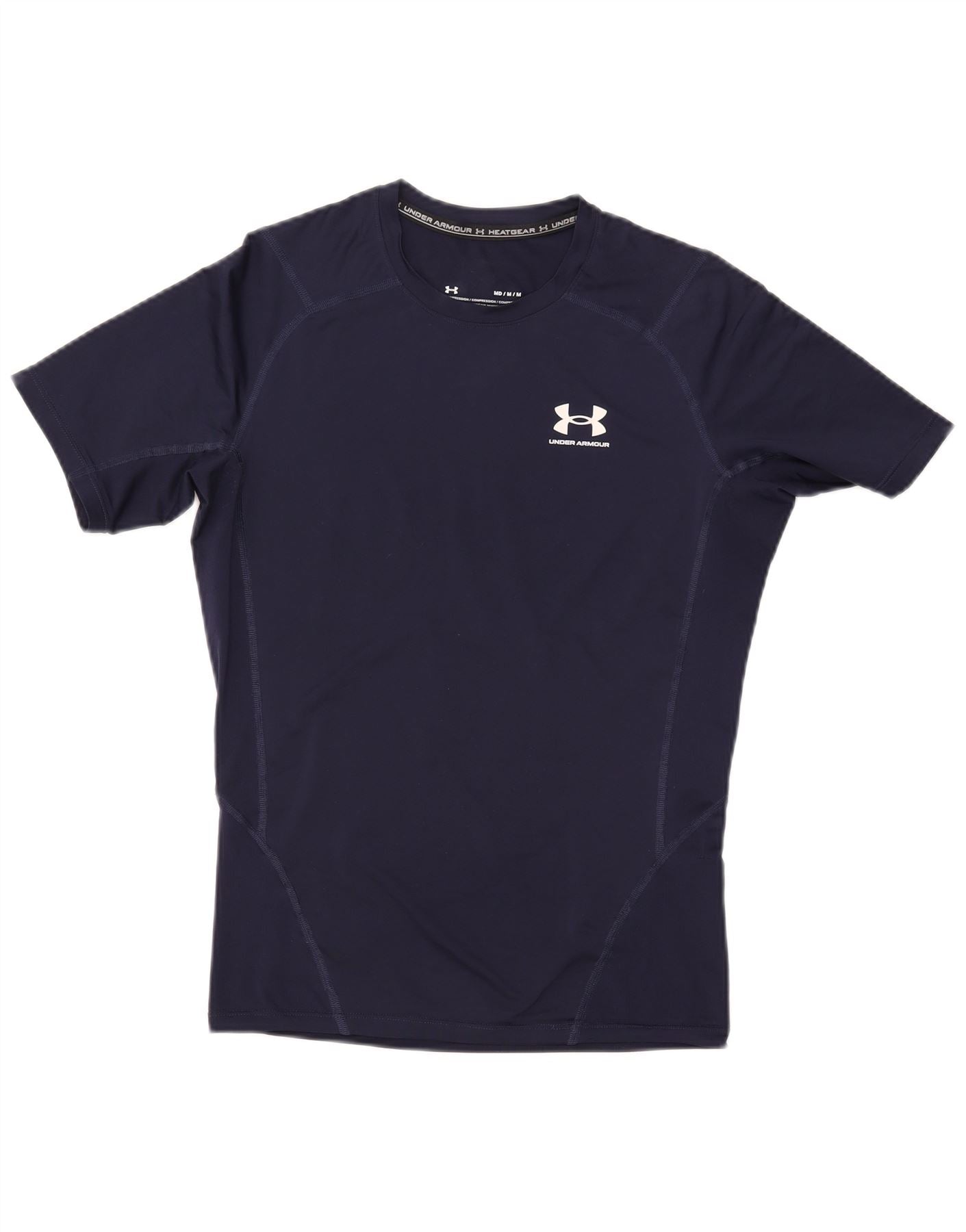 Under Armour Herre Heat Gear T-Shirt Top Medium Navy Blue Syntetisk