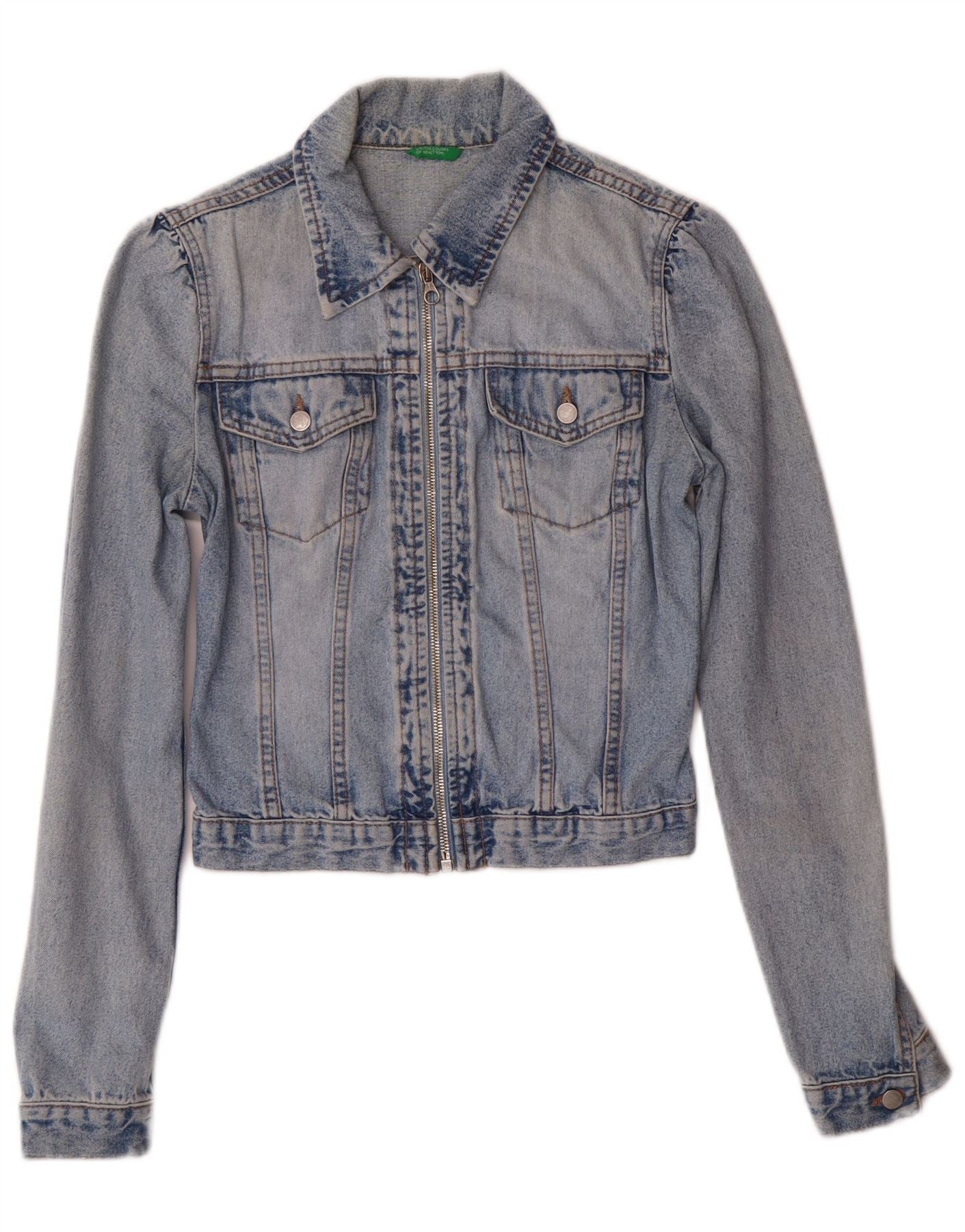 United Colors of Benetton Dame Crop Denim Jacket UK 6 XS Blue Classic