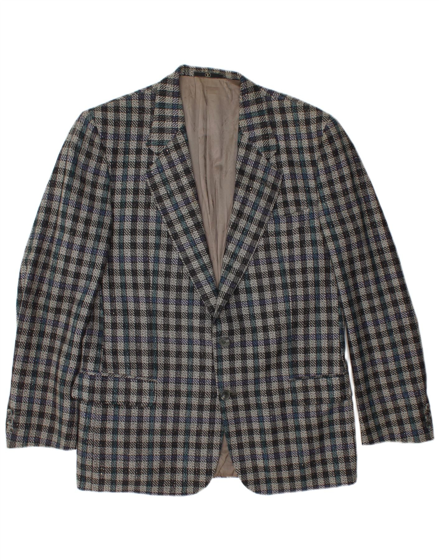 VALENTINO Herre 2-knaps blazerjakke IT 50 Stor blå ternet jomfruuld