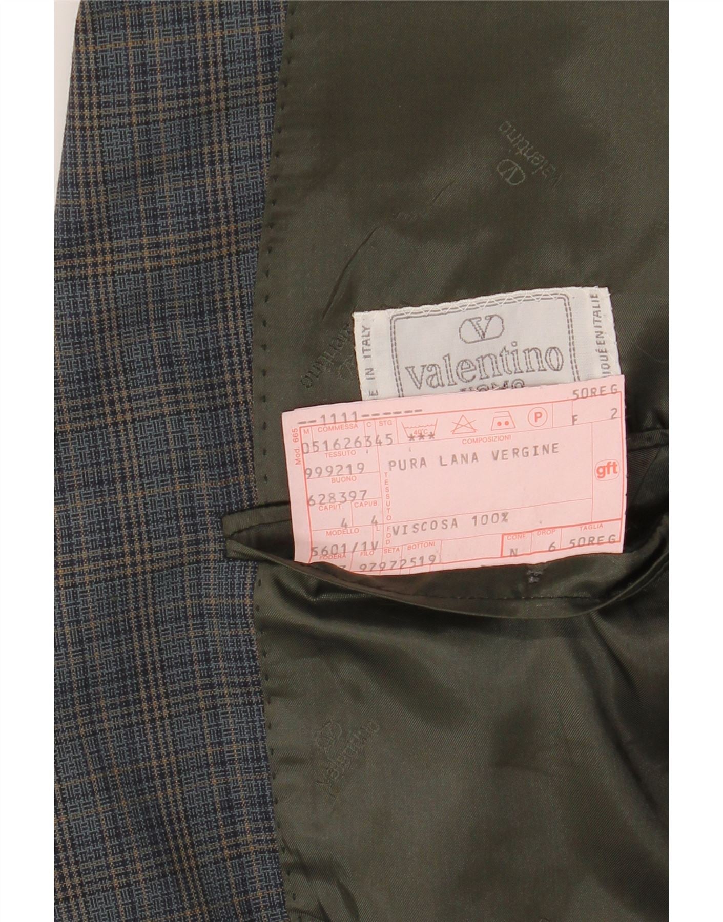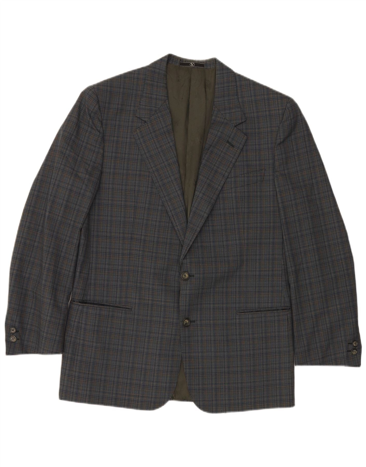 VALENTINO Herre 2-knaps blazerjakke IT 50 Stor blå ternet viskose
