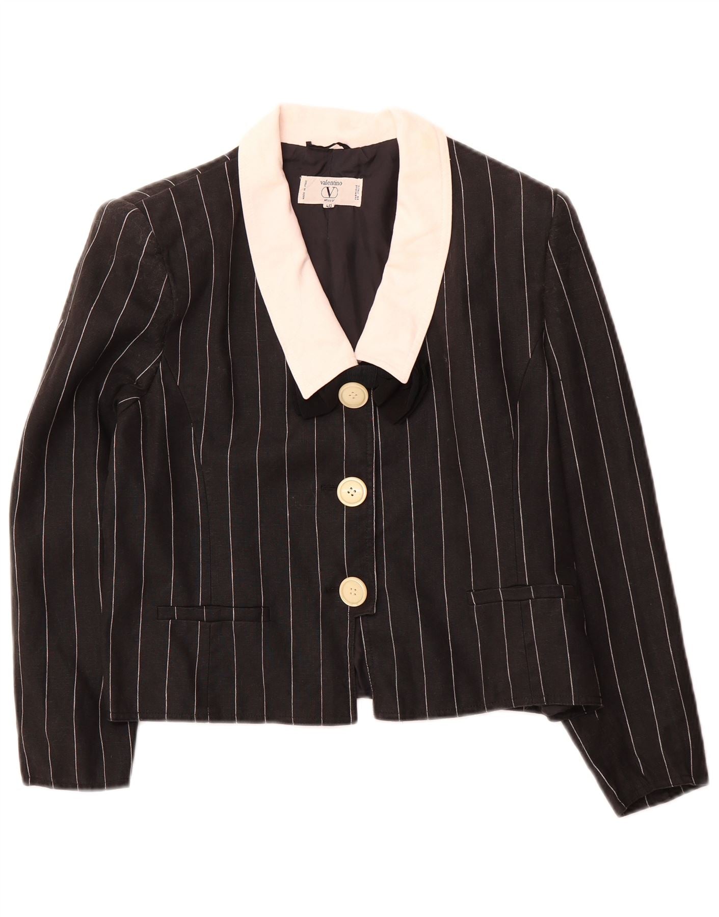 VALENTINO Womens Crop 3 Button Blazer Jacket IT 48 XL Black Pinstripe