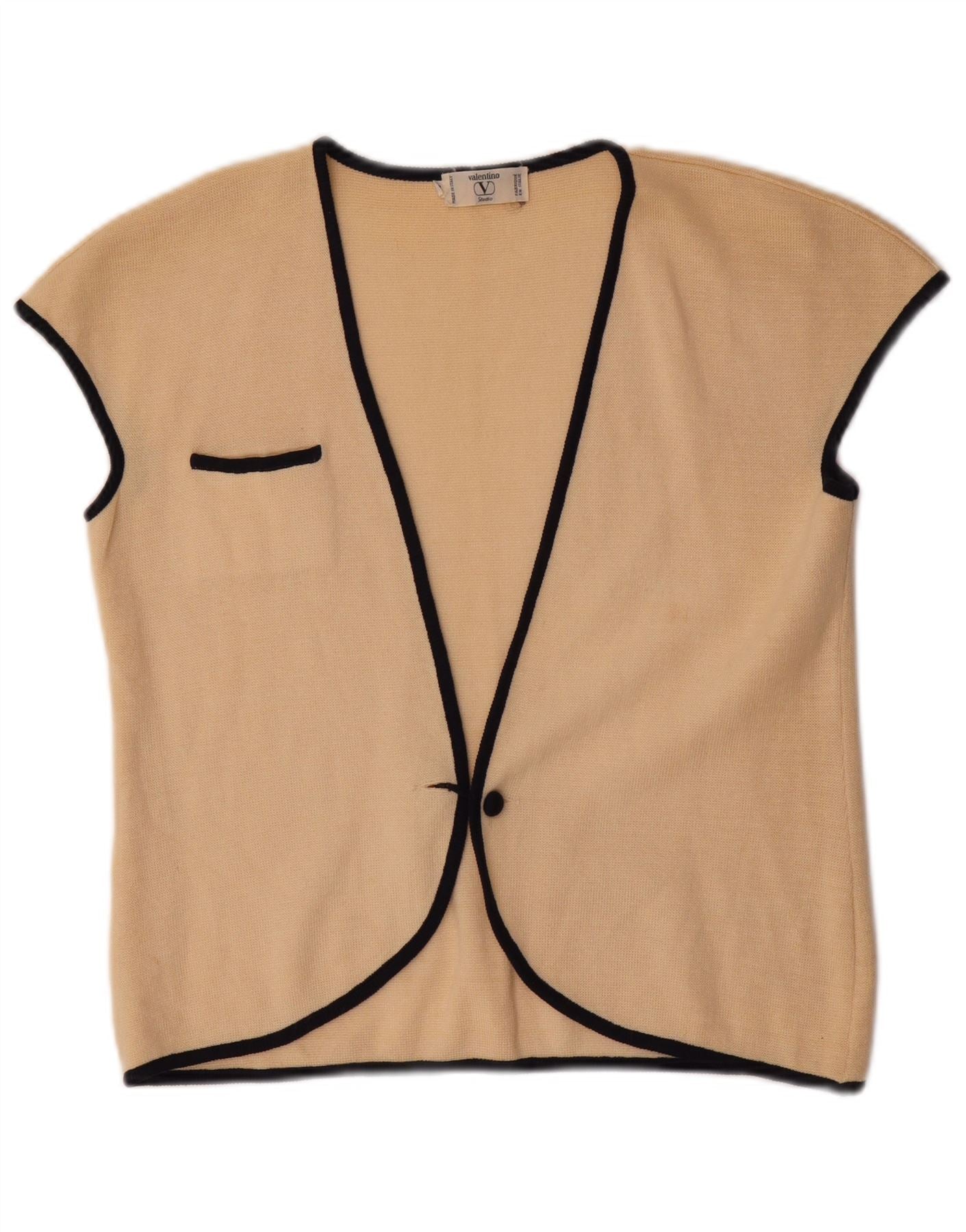 VALENTINO Womens Sleeveless Cardigan Sweater IT 44 Medium Beige Wool