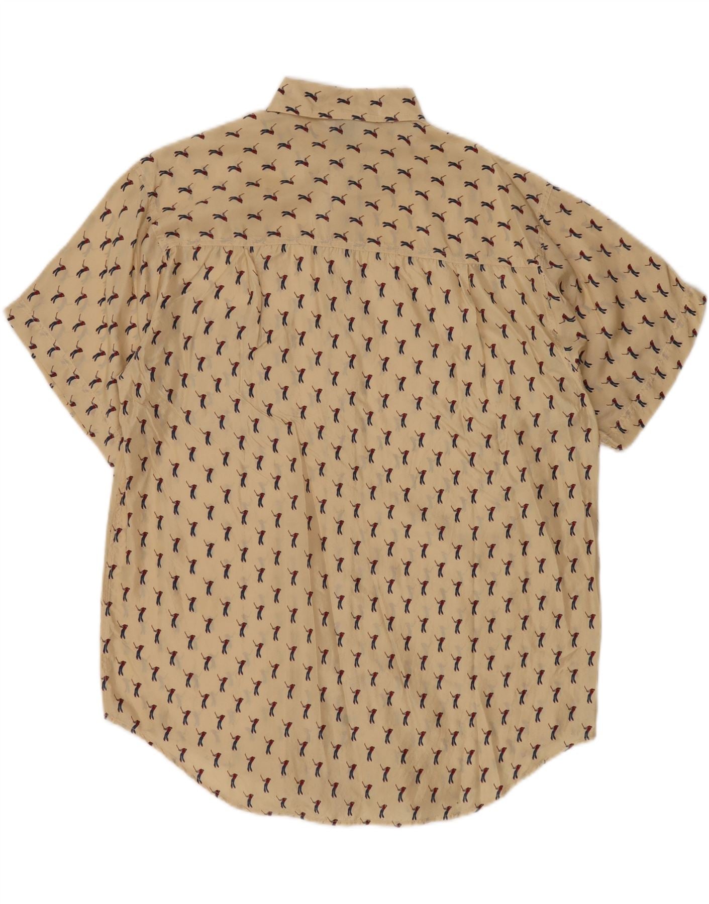 VAN ZON Herre Golf abstrakt mønster kortærmet skjorte Medium Beige Silke