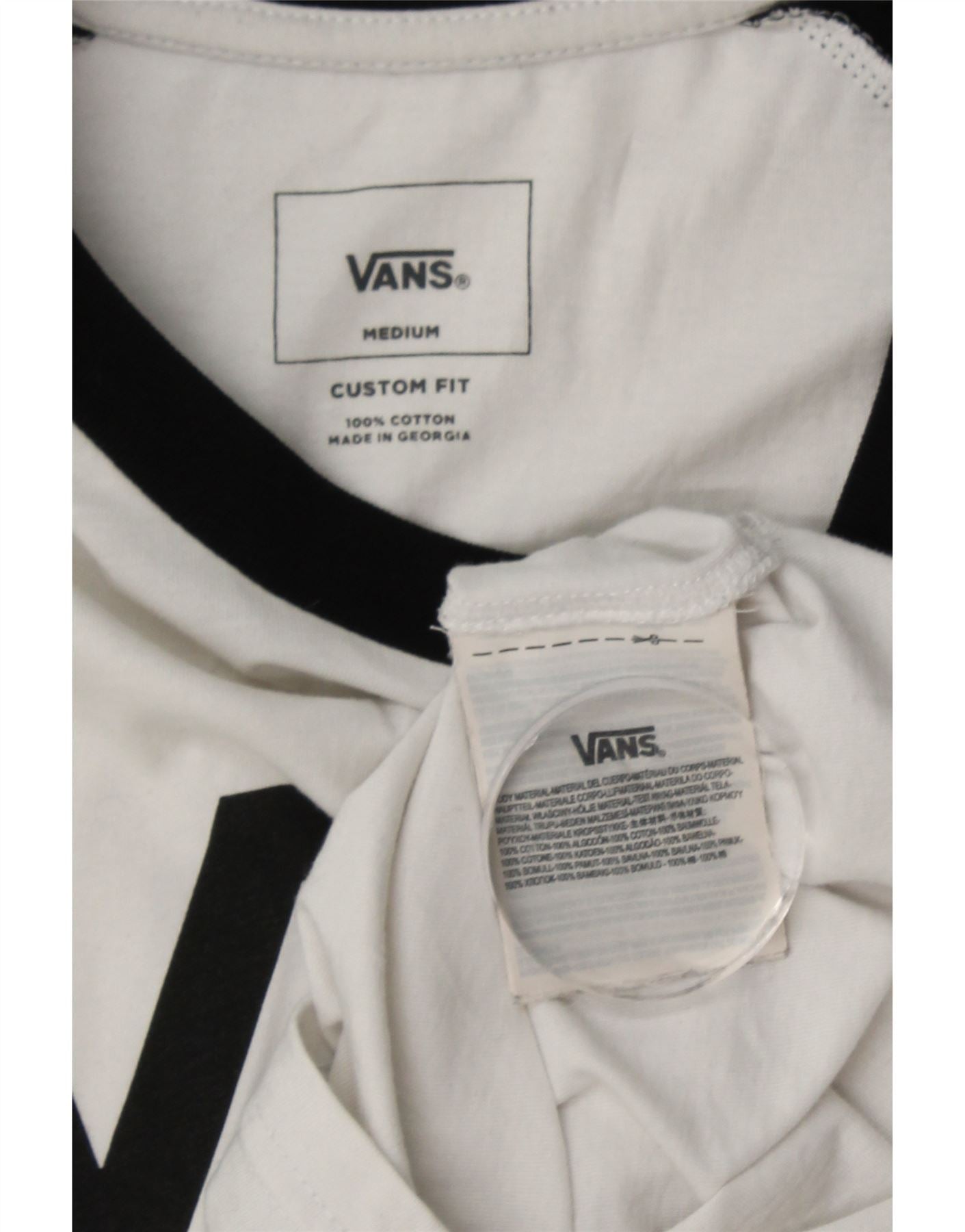 VANS Mens Custom Fit Graphic Top 3/4 Sleeve Medium White Colourblock