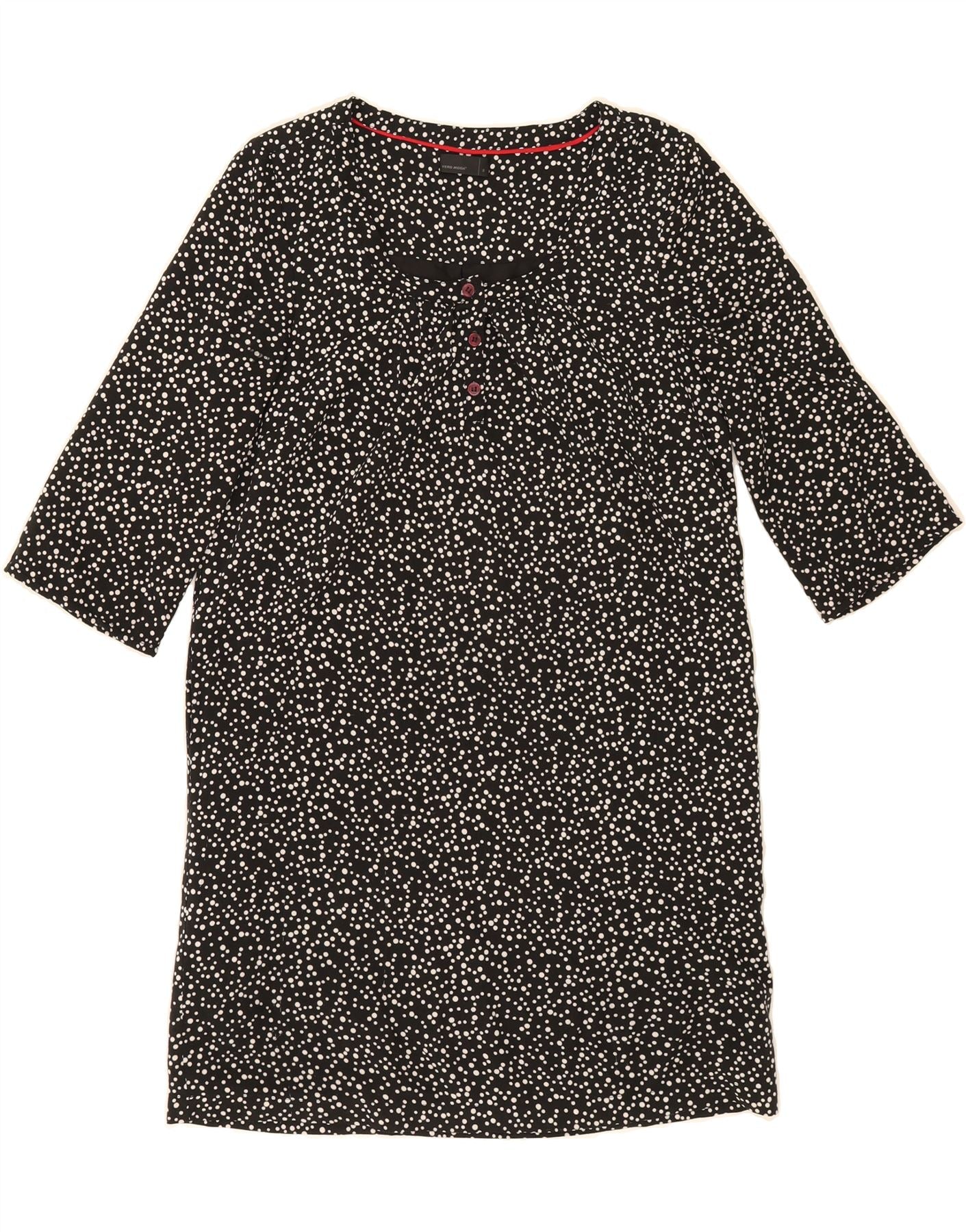 VERO MODA Womens 3/4 Sleeve Shift Dress UK 10 Small Black Polka Dot