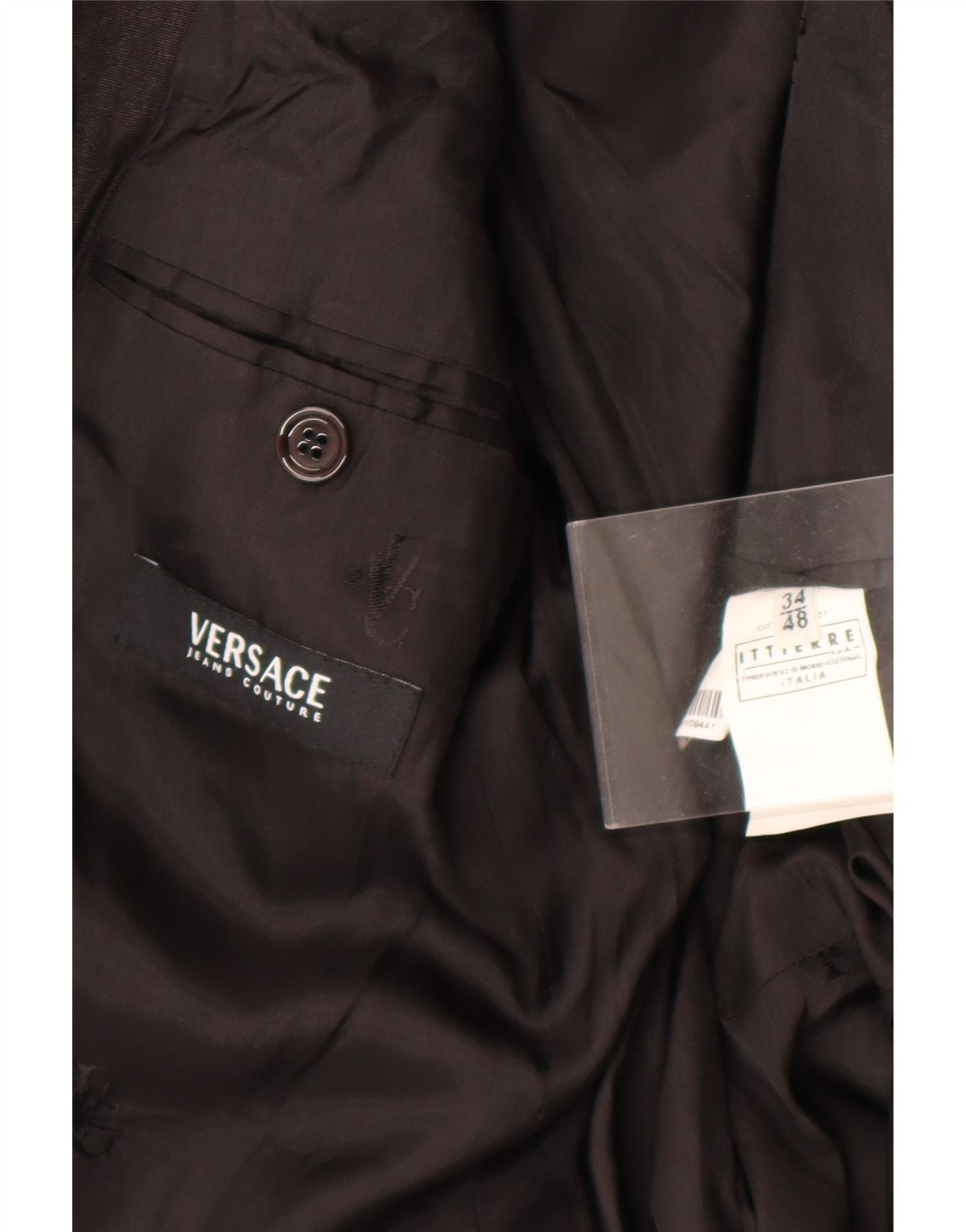 - AI beskrivelse: Denne Versace herre 2-delt jakkesæt er lavet af et raffineret sort vævet stof. Jakken har en klassisk krave-udskæring og to-knapper foran. Lange ærmer afsluttes med knappede manchetter. Det giver en normal pasform for behageligt slid. Fuldt foret med praktiske lommer. Designet bevarer en tidløs, klassisk stil, perfekt til formelle lejligheder.