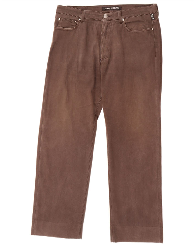 VERSACE Mens Ittierre Straight Jeans IT 50 Large W36 L29 Brown Cotton