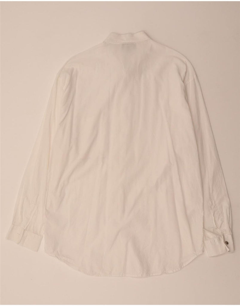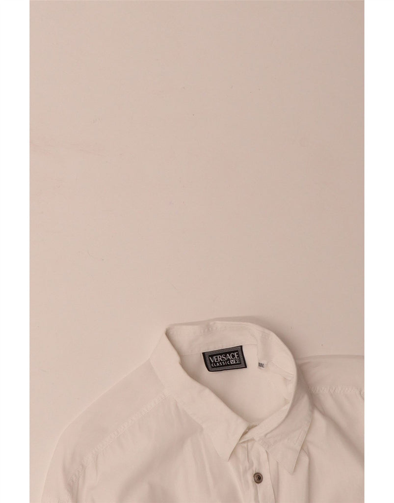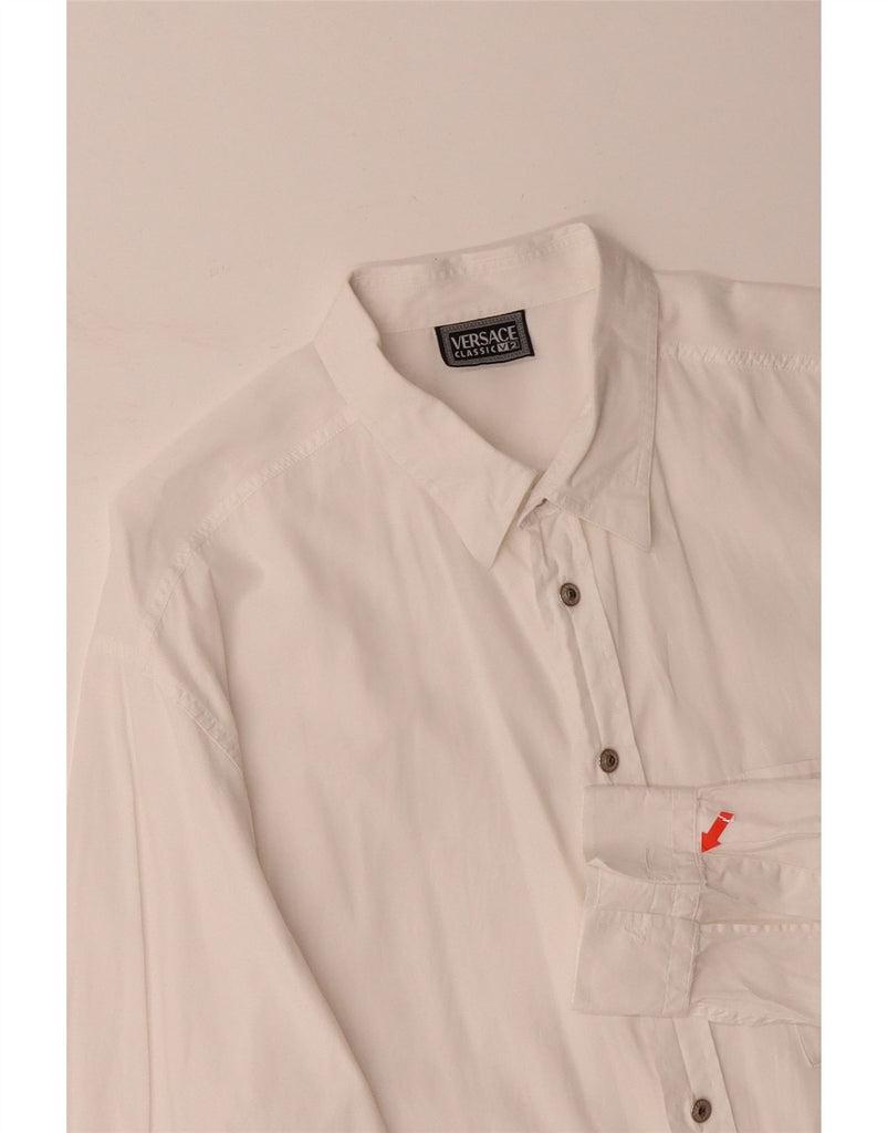 - AI Description: This Versace mens shirt is crafted from a crisp white woven fabric. It features a classic collared neckline and long sleeves. The button-up front ensures a neat finish. Subtle pockets add practical detail. A regular fit offers comfortable wear, making it a versatile wardrobe staple. This classic style provides timeless elegance for any occasion.
