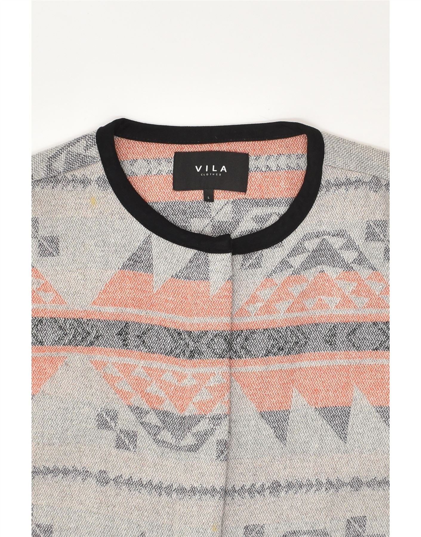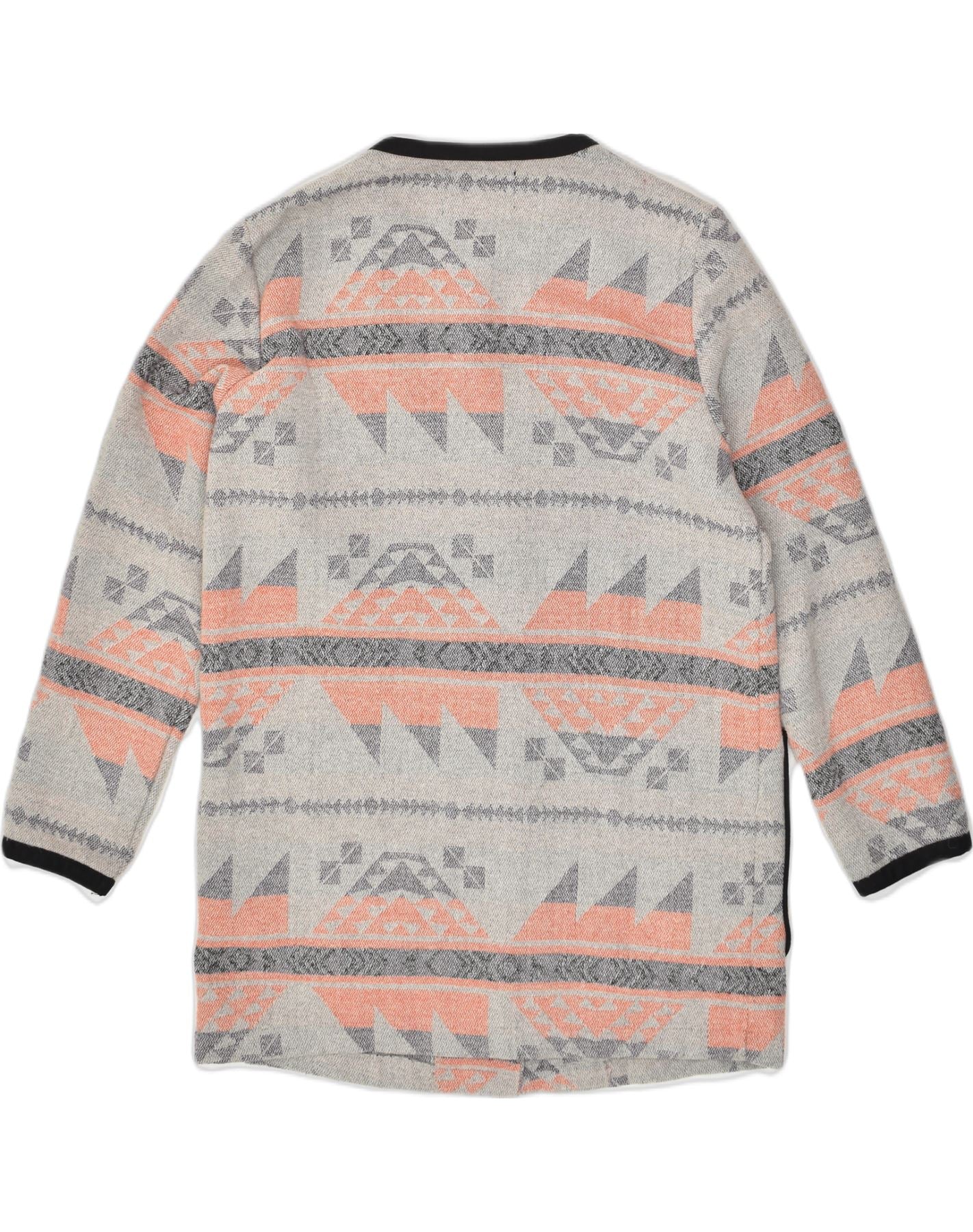 VILA Womens Cardigan Sweater UK 16 Large Grey Geometric Polyester Aztec