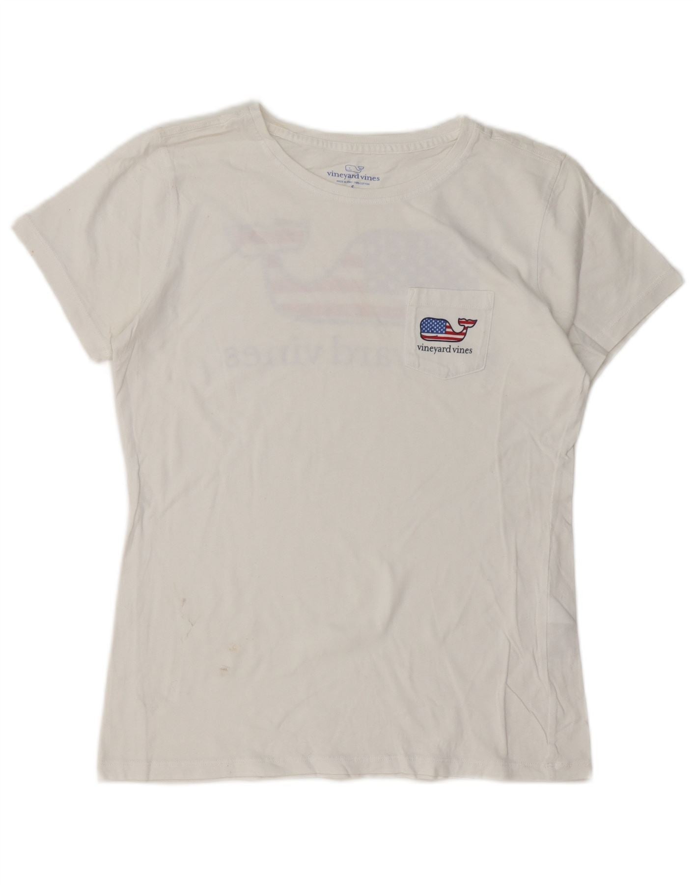 VINEYARD VINES Dame Grafisk T-Shirt Top UK 10 Small White Bomuld