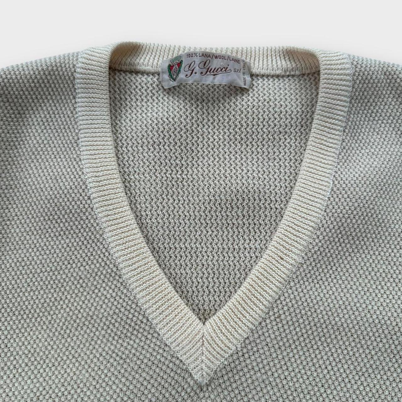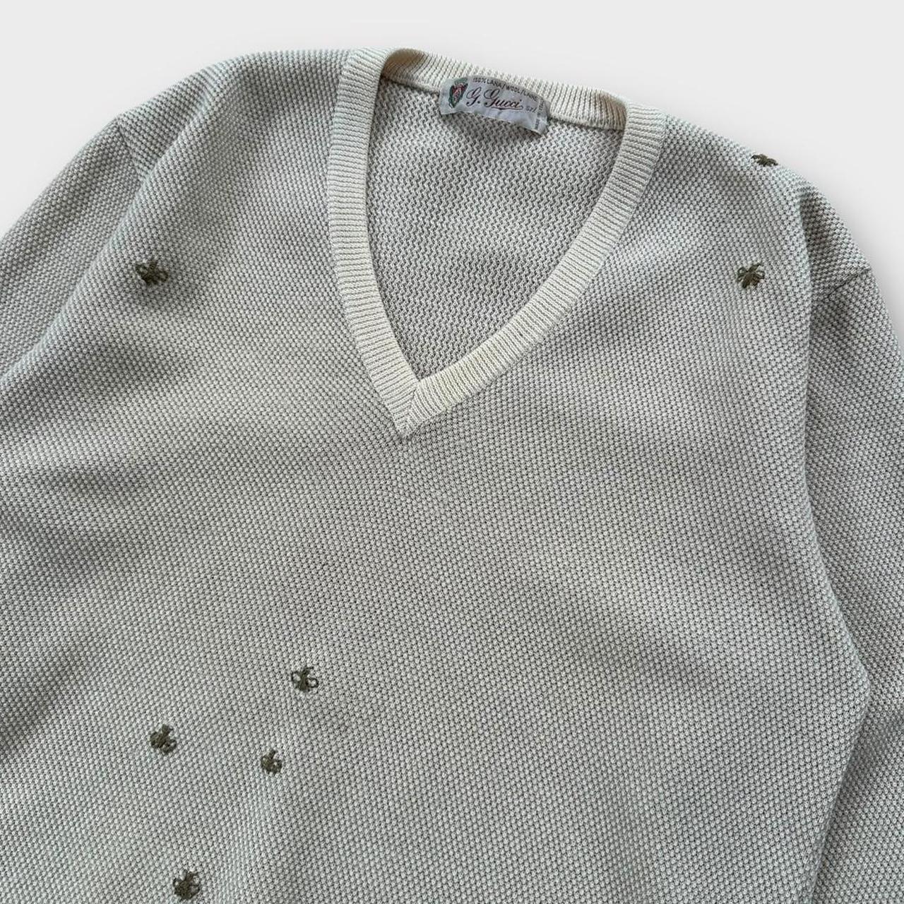 Vintage original 1990'er Gucci striktrøje i beige med broderede G'er og Gucci bier overalt vist på billederne