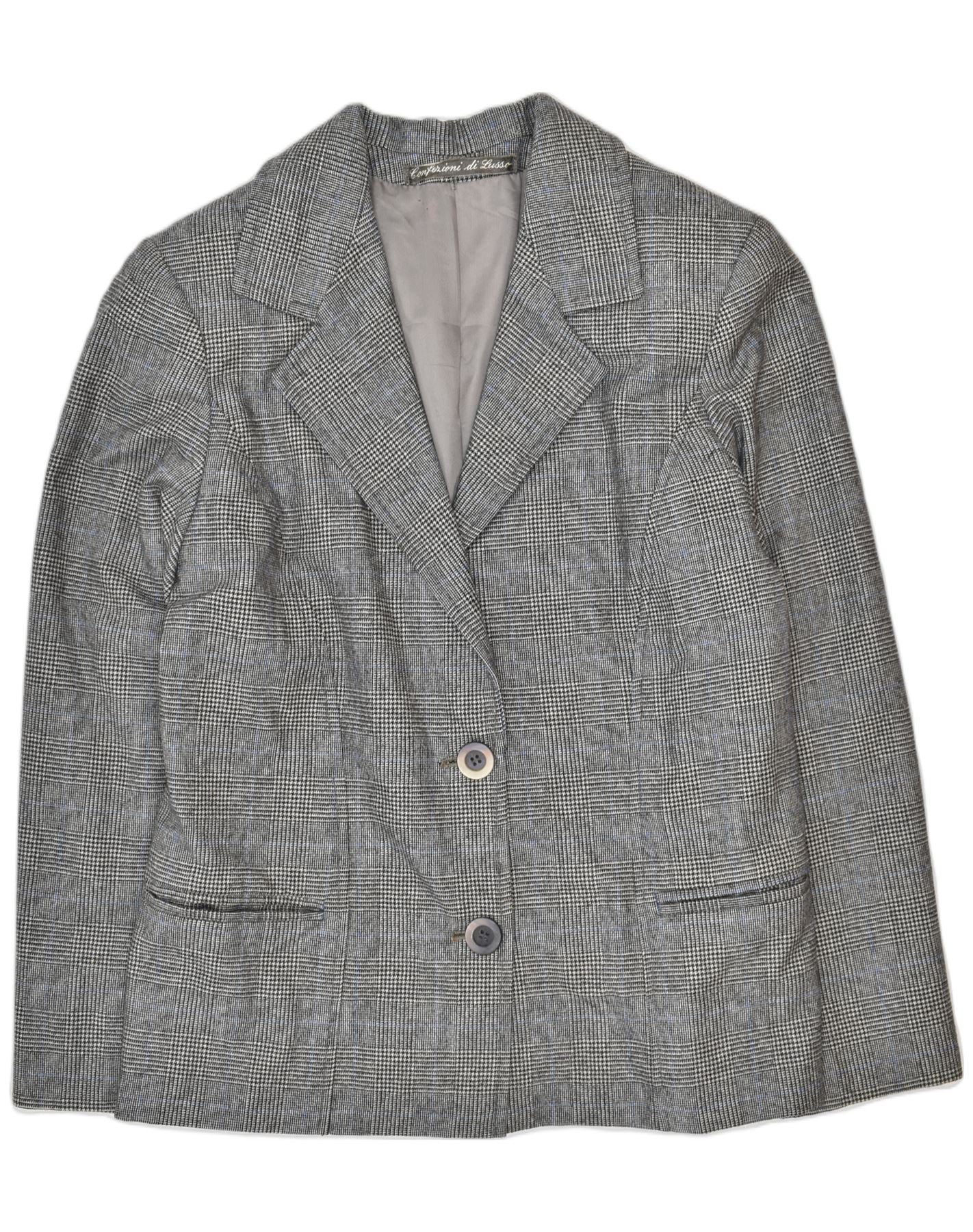 VINTAGE Dame 2-knaps blazerjakke UK 14 mellemgrå ternet