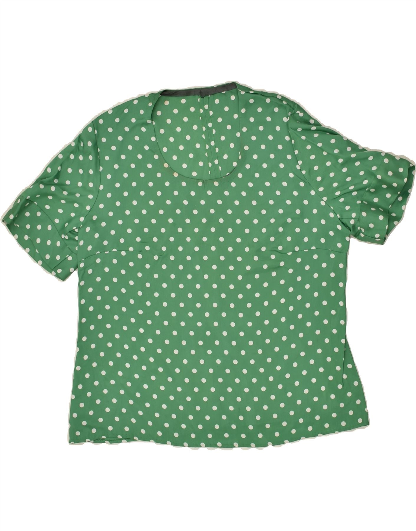 VINTAGE Damebluse Top UK 12 Medium Green Polka Dot