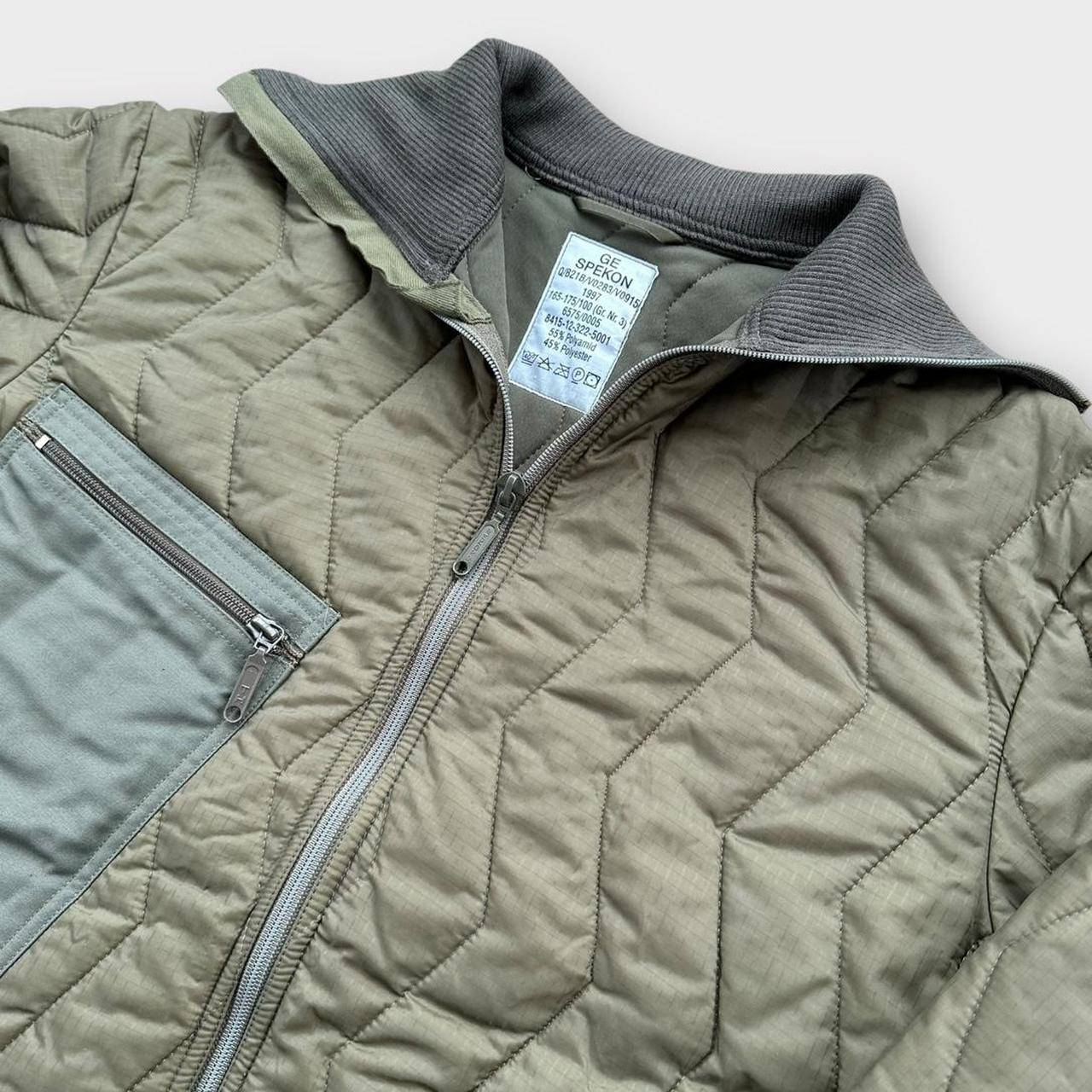 Vintage 1997 tysk militær linerjakke med lynlås i grøn med lommer foran