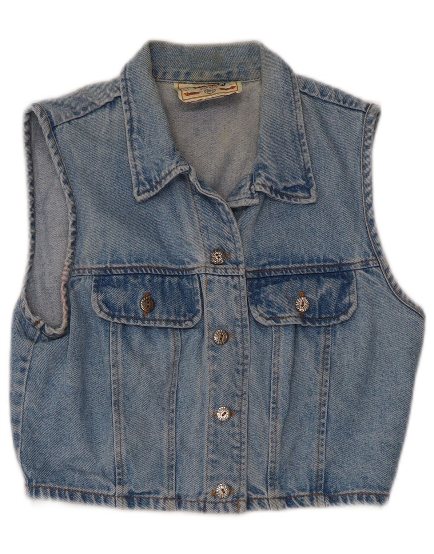 VINTAGE Girls Denim Gilet 9-10 År Blå Bomuld