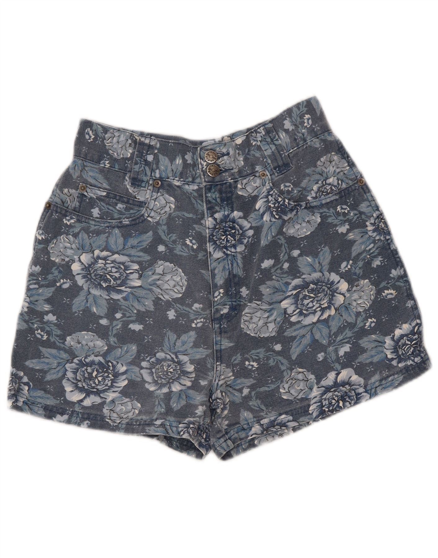 VINTAGE Piger High Waist denimshorts 9-10 år W26 Navy Blue Floral