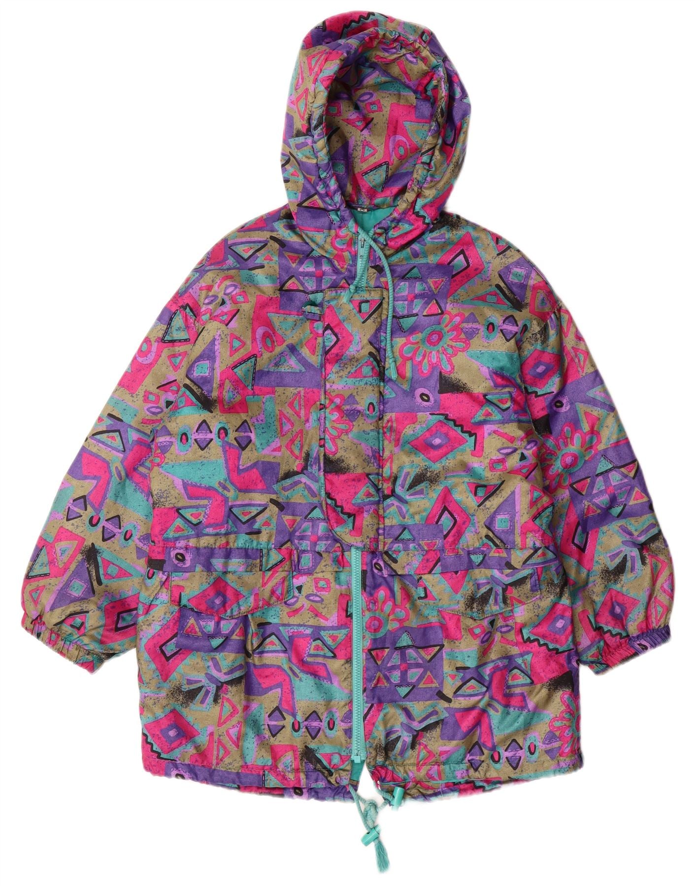 VINTAGE Piger Hættejakke frakke 15-16 år Flerfarvet Geometrisk