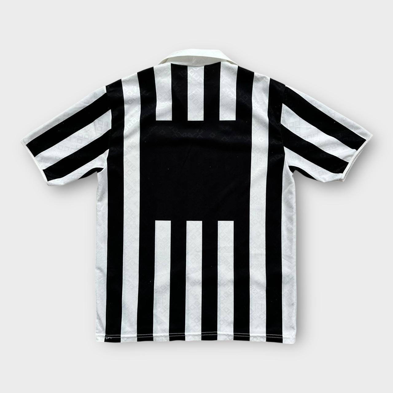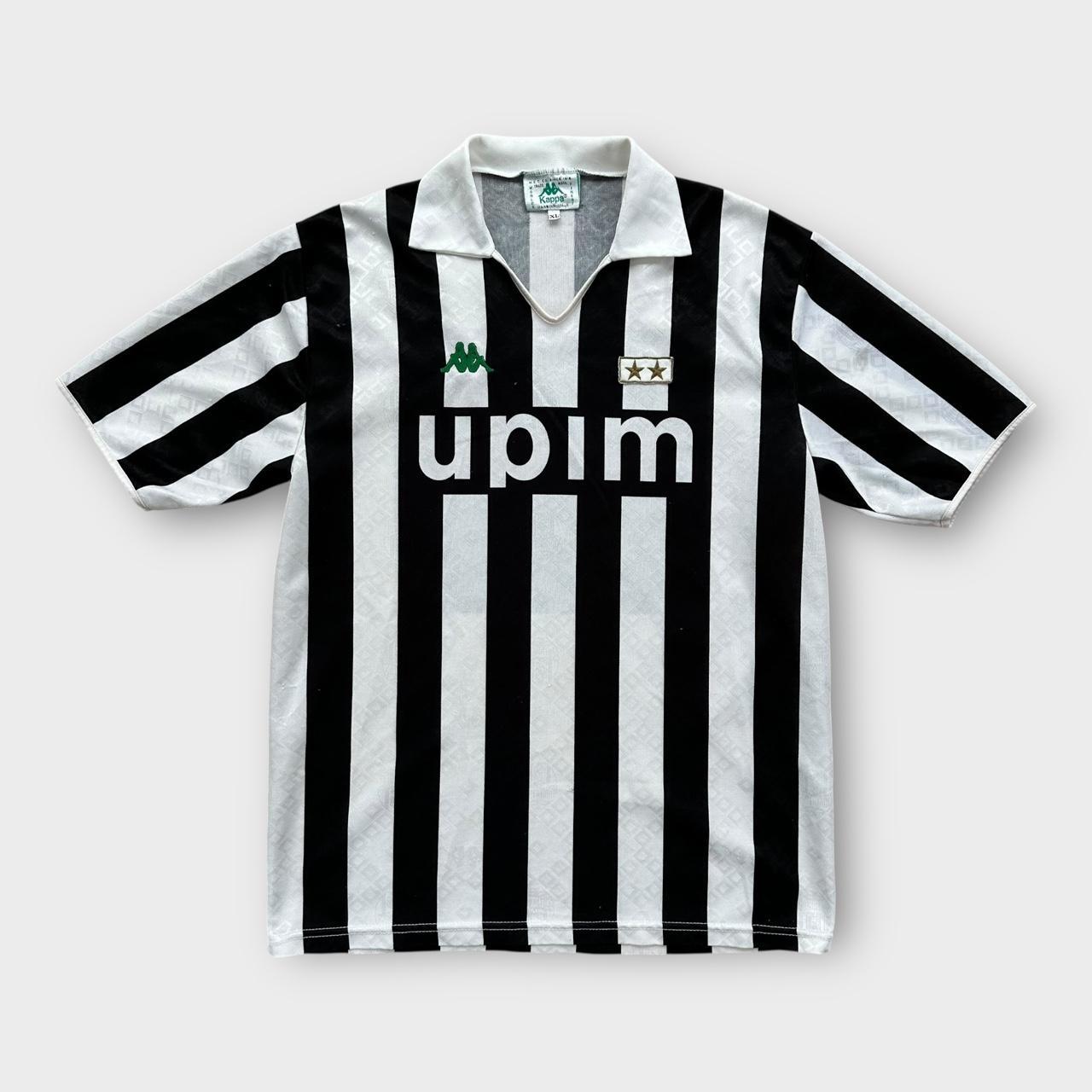 Vintage 1991/1992 Juventus hjemmefodboldtrøje fra Kappa med broderede logoer og sponsor trykt på brystet
