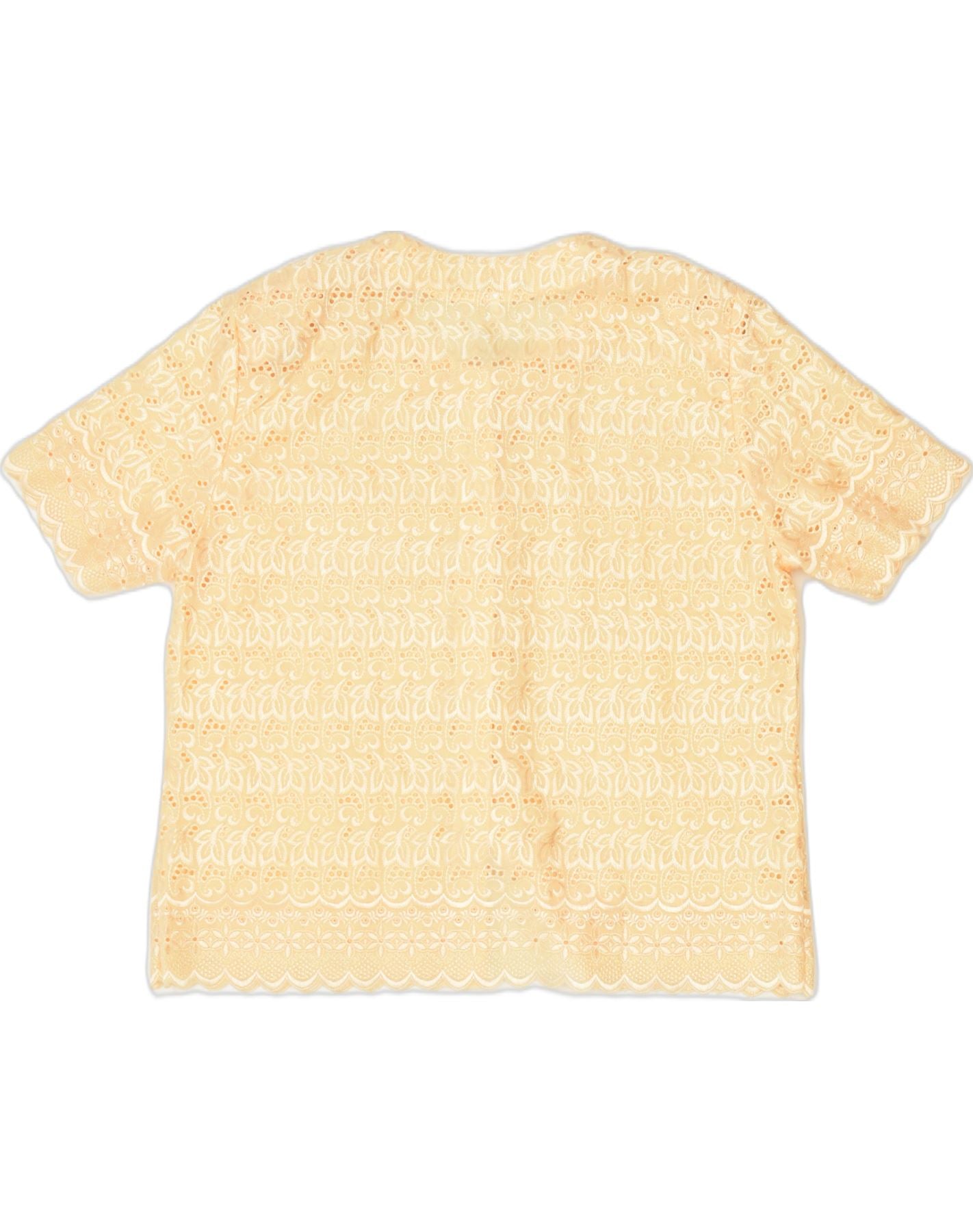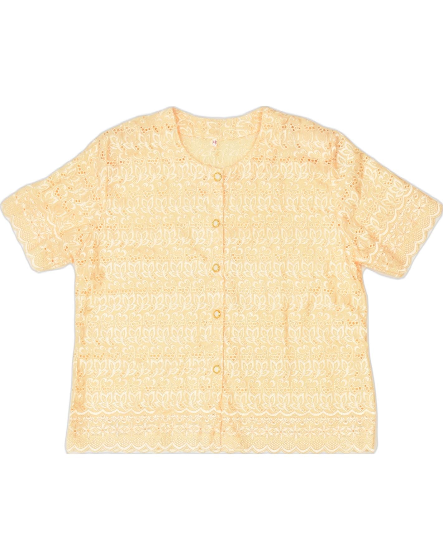 VINTAGE Kortærmet skjortebluse til kvinder IT 48 XL Gul blomster
