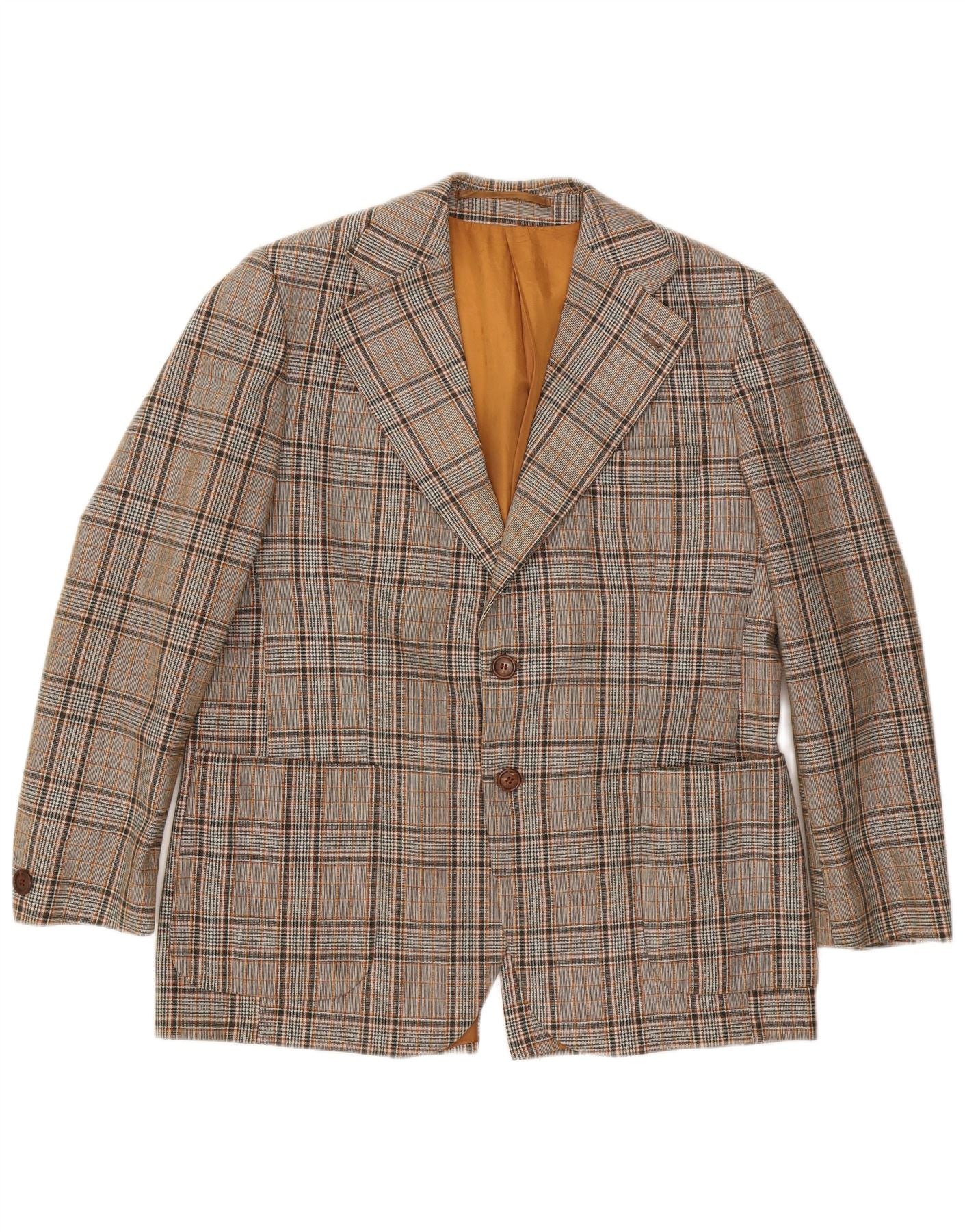 VINTAGE Herre 2-knaps blazerjakke UK 40 Stor grå ternet polyester