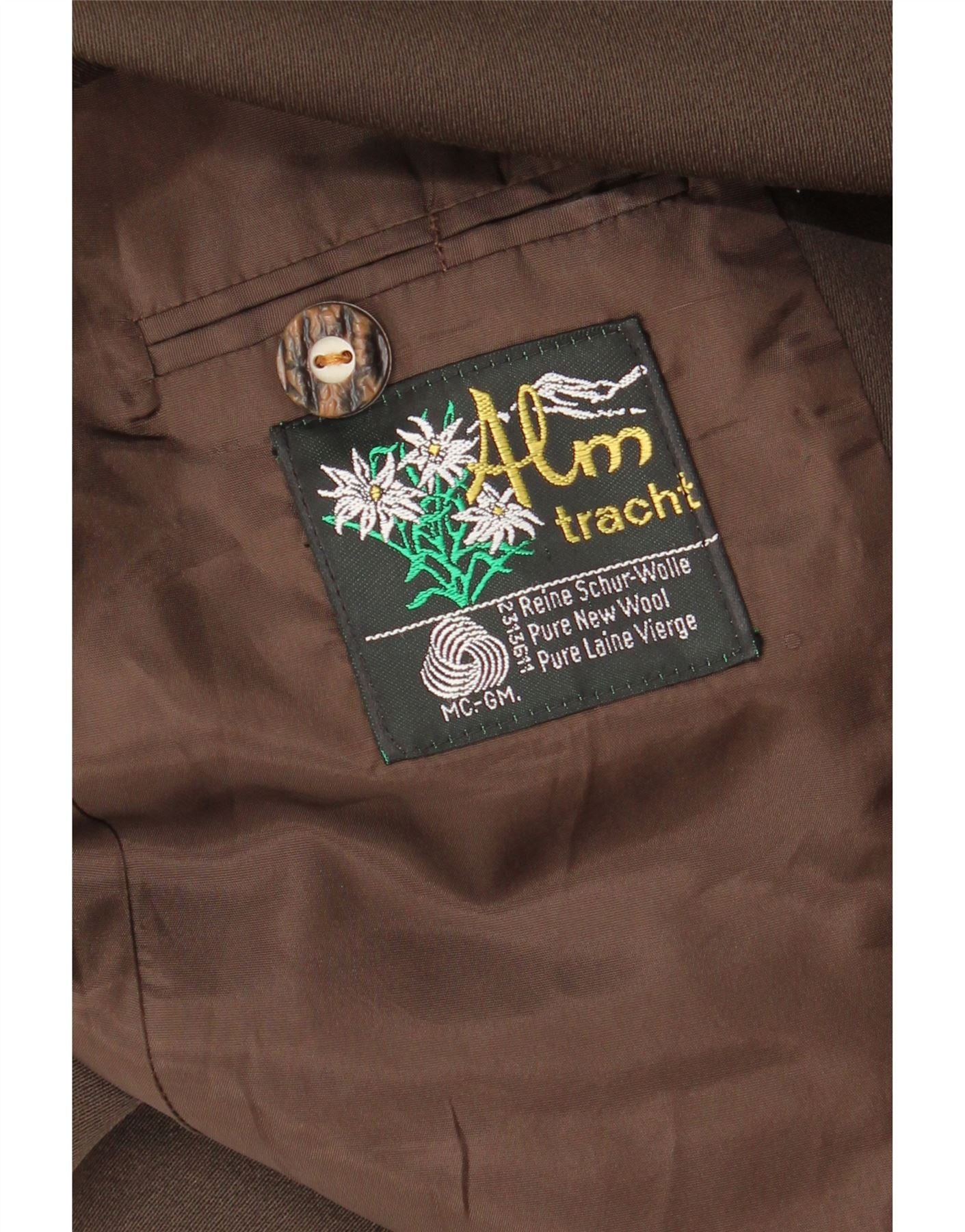 - AI beskrivelse: Denne brune vintagejakke til mænd er lavet af ren ny uld, der tilbyder en raffineret vævet tekstur. Den har en karakteristisk stand-up krave-udskæring og en frontlukning med tre knapper. Lange ærmer og en klassisk pasform sikrer en smart silhuet. Subtile lommer tilføjer praktiske detaljer. Den etniske Alm tracht-stil giver den en unik, traditionel appel.