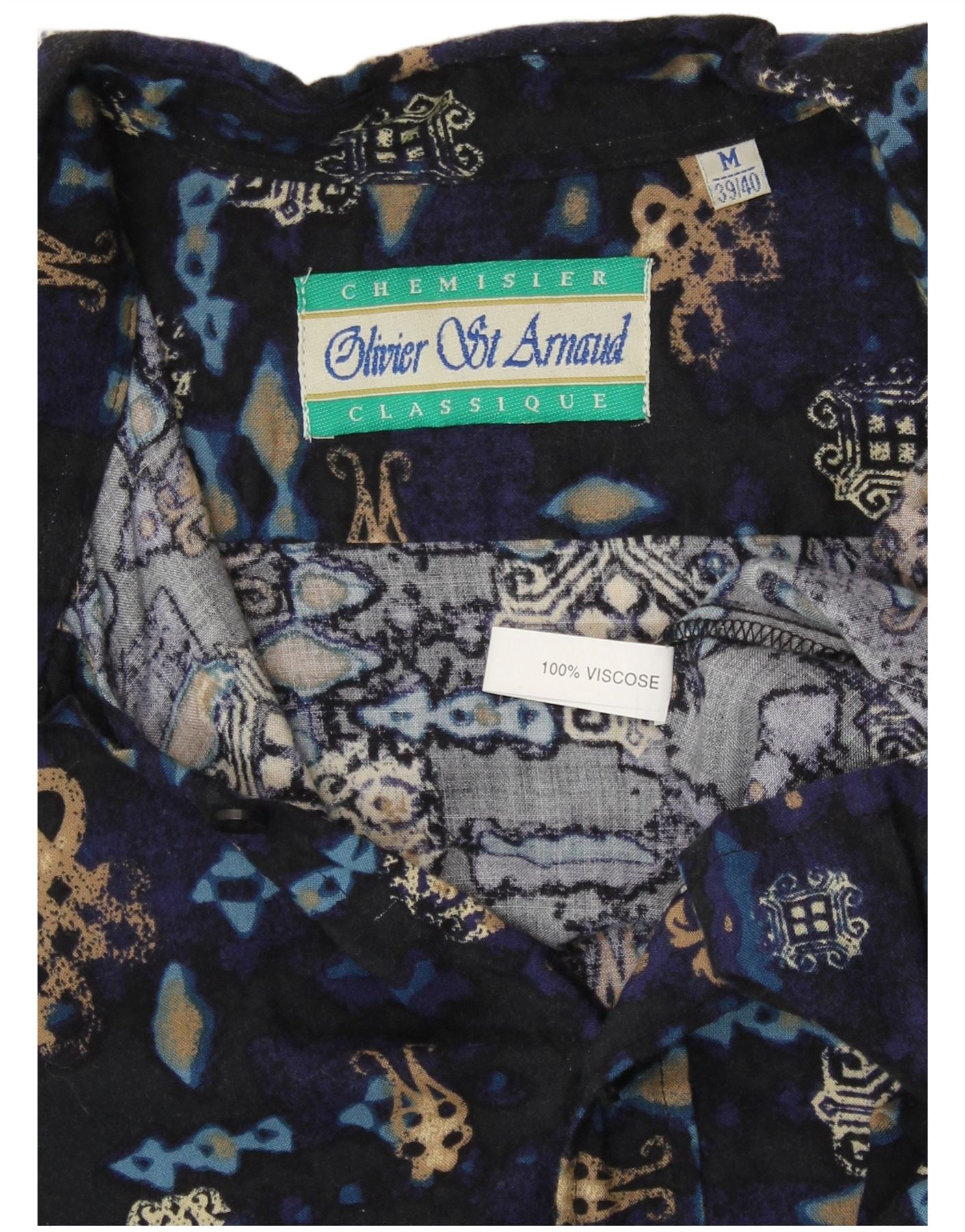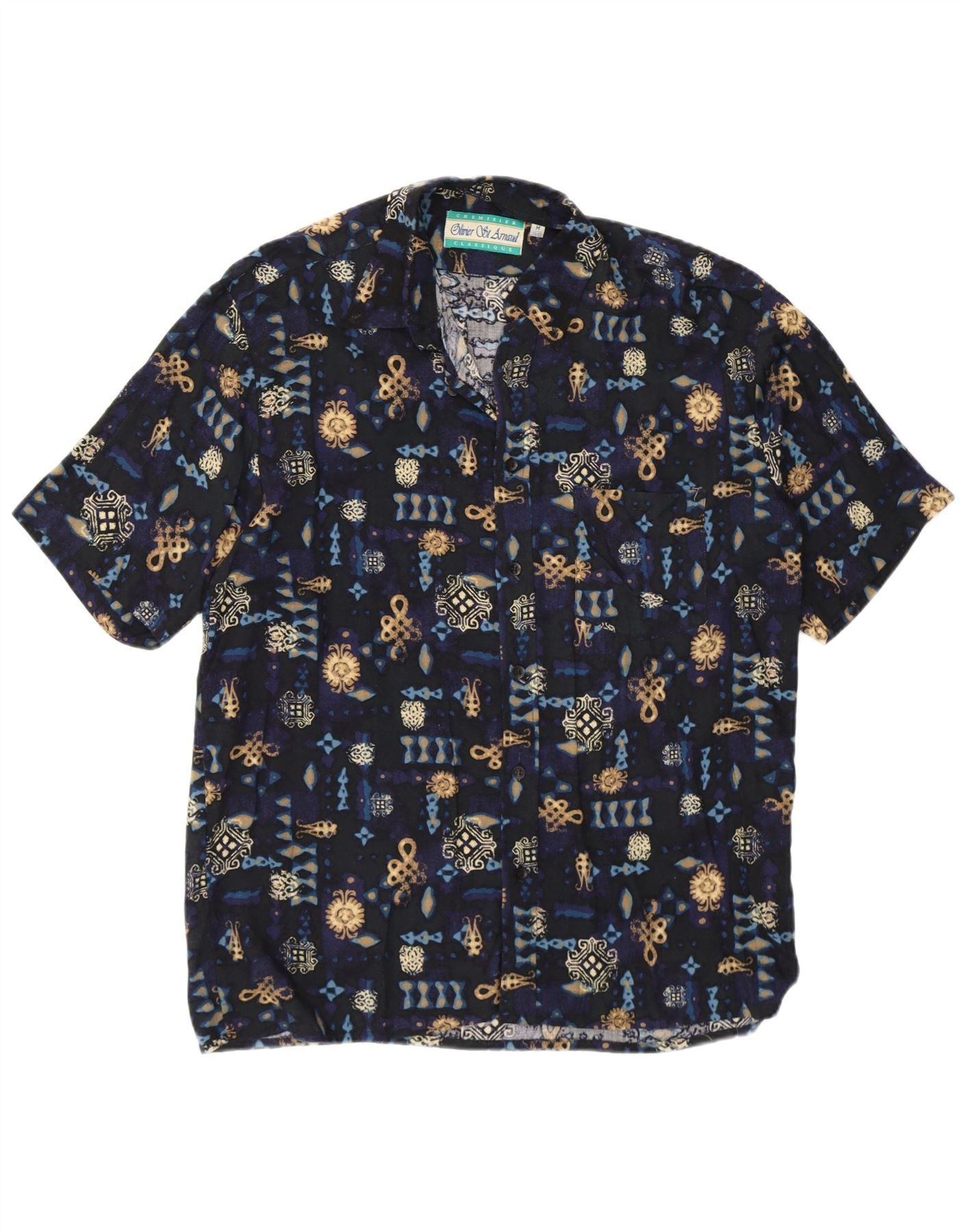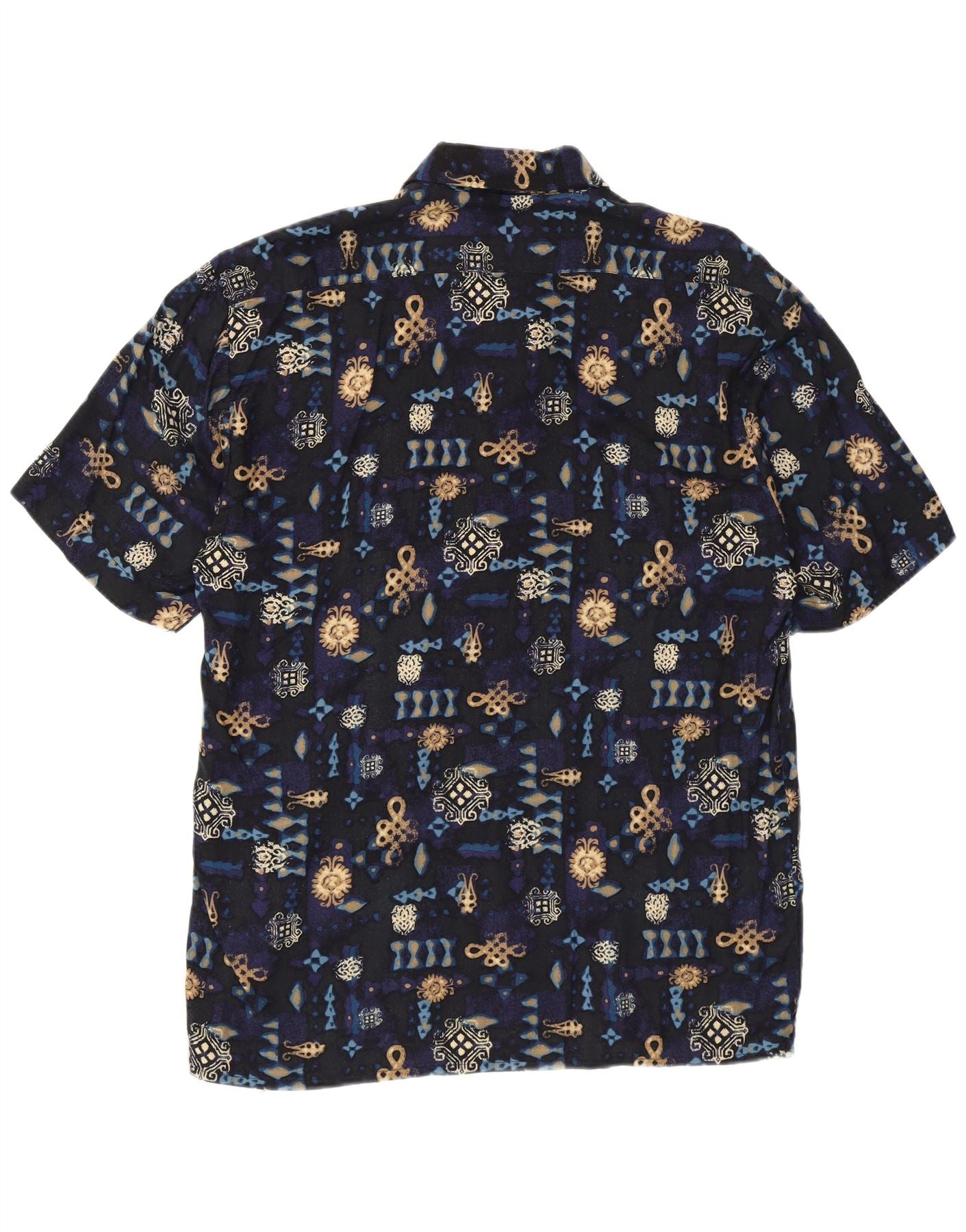 VINTAGE skjorte med abstrakt mønster til mænd, størrelse 39/40 Medium Navyblå