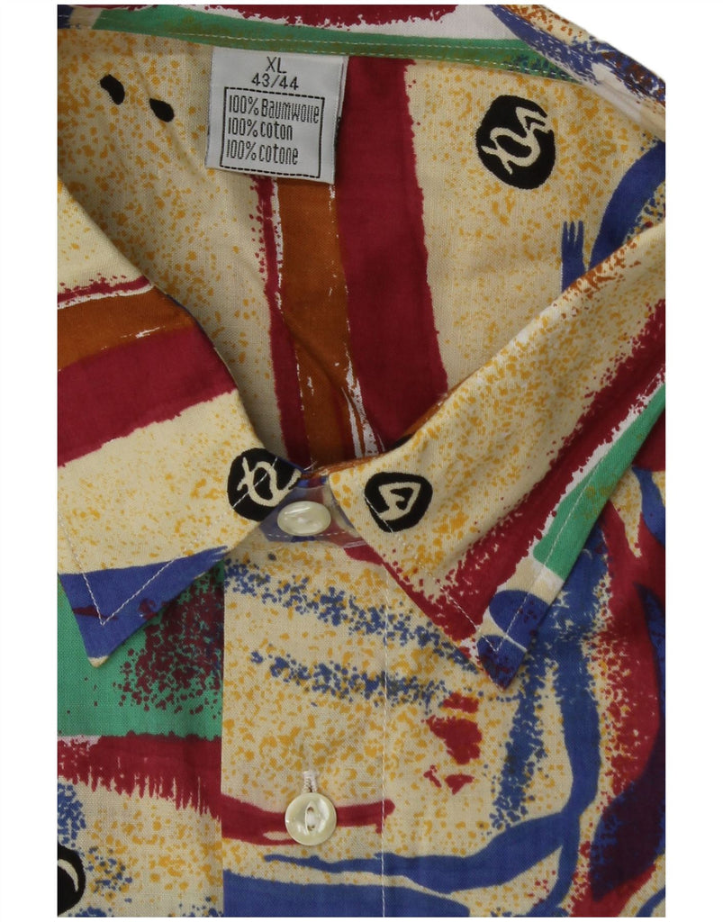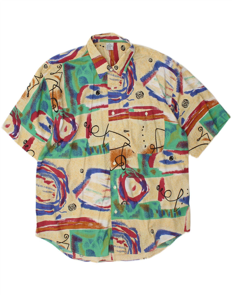 VINTAGE skjorte med abstrakt mønster til mænd, størrelse 43/44 XL Flerfarvet