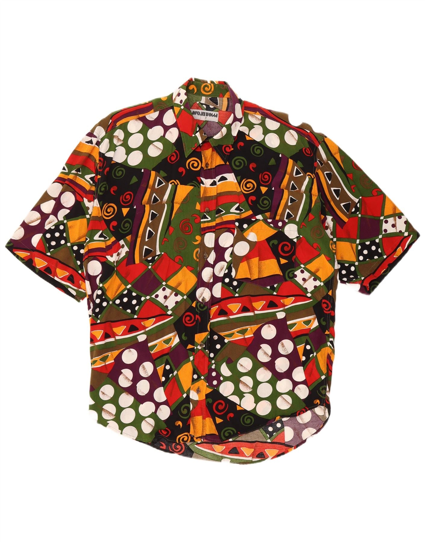 VINTAGE Kortærmet skjorte med abstrakt mønster til mænd, medium flerfarvet