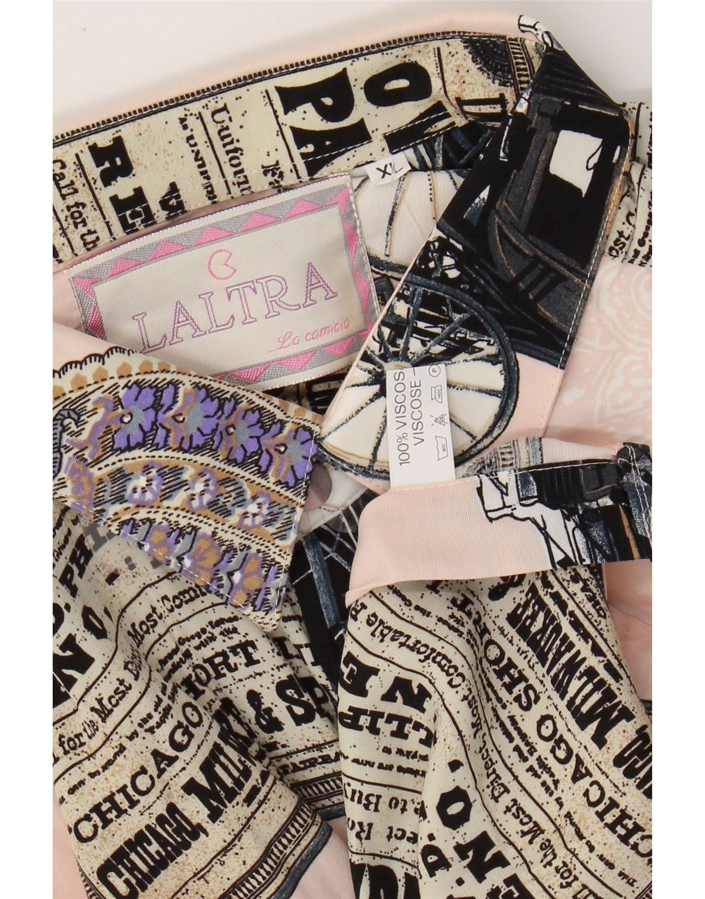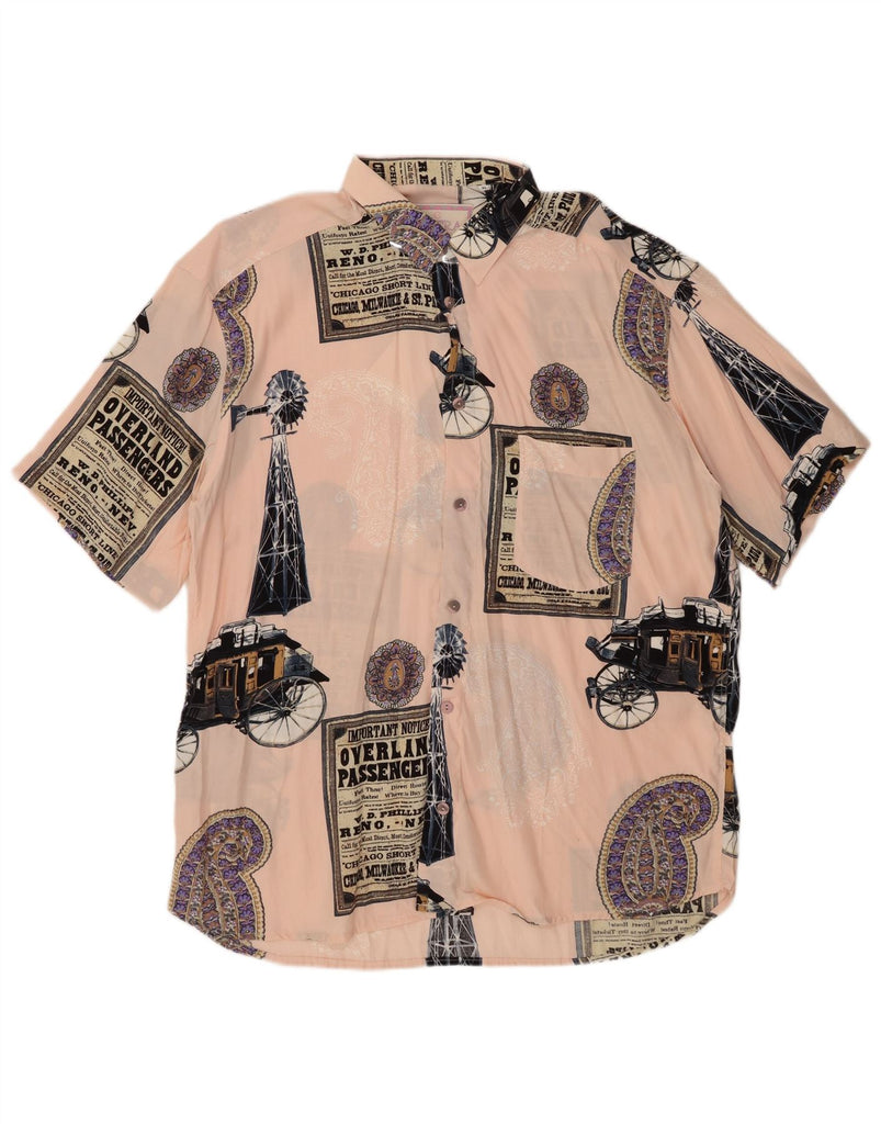 VINTAGE Kortærmet skjorte med abstrakt mønster til mænd XL Pink Patchwork Viscose