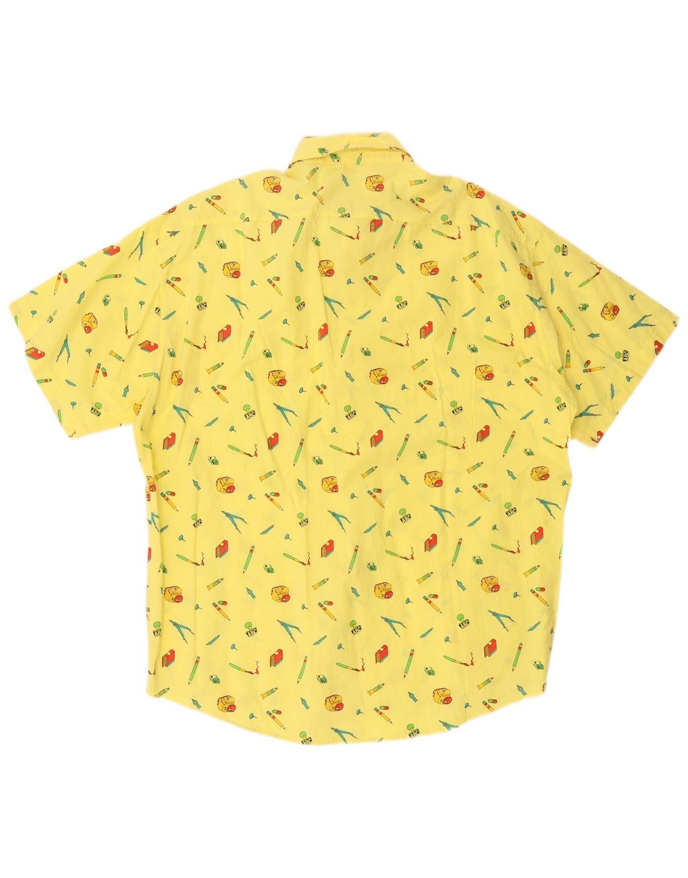 VINTAGE kortærmet skjorte med abstrakt mønster til mænd XL gul bomuld