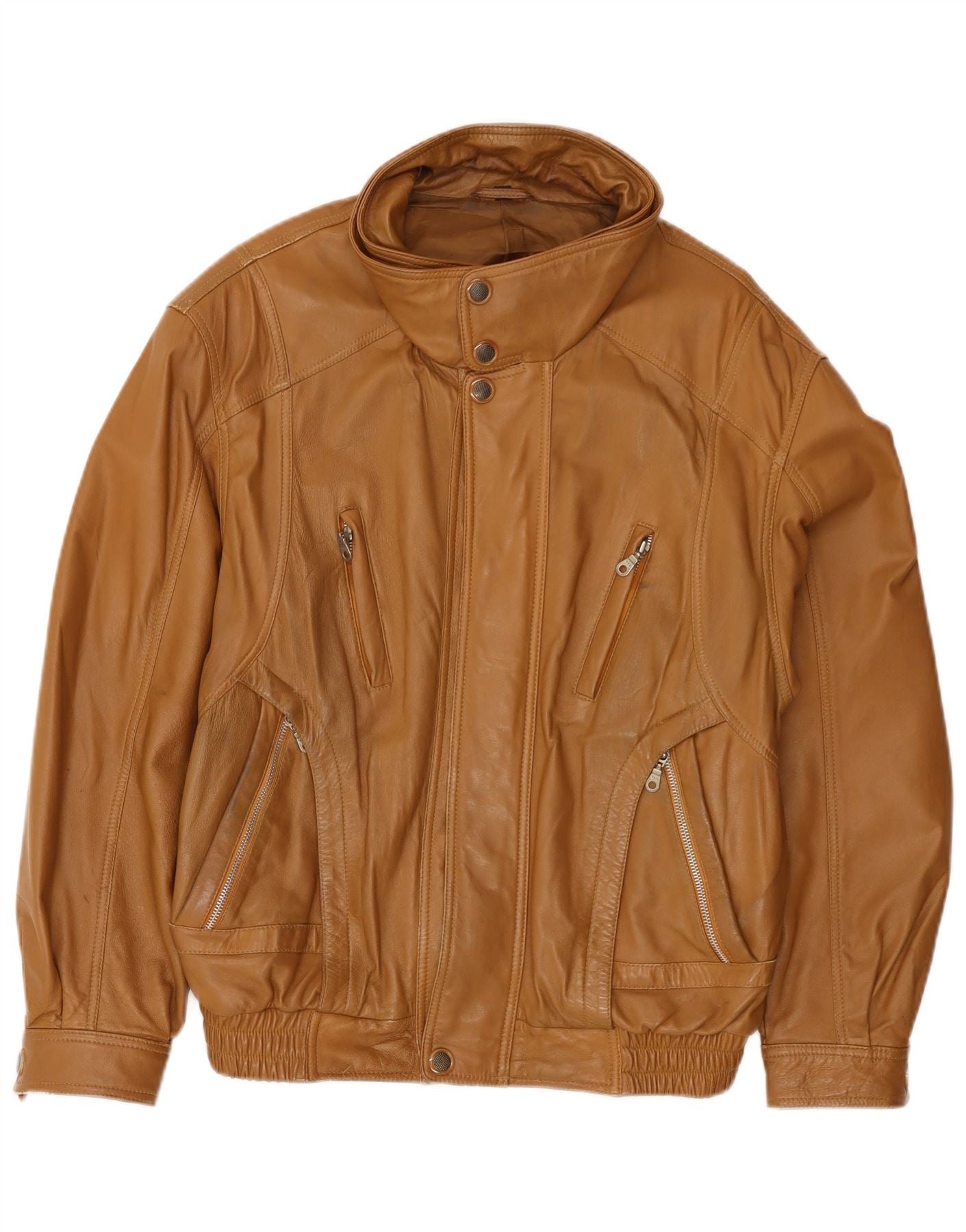 - AI beskrivelse: Denne vintage læderjakke til mænd er lavet af rigt brunt ægte læder, der tilbyder en smidig tekstur. Den har en klassisk halsudskæring og fuld lynlås. Lange ærmer ender i manchetdetaljer. Flere lynlåslommer tilføjer praktisk stil. Den almindelige pasform sikrer behageligt slid. Den er fuldt foret for ekstra komfort, perfekt til et tidløst look.