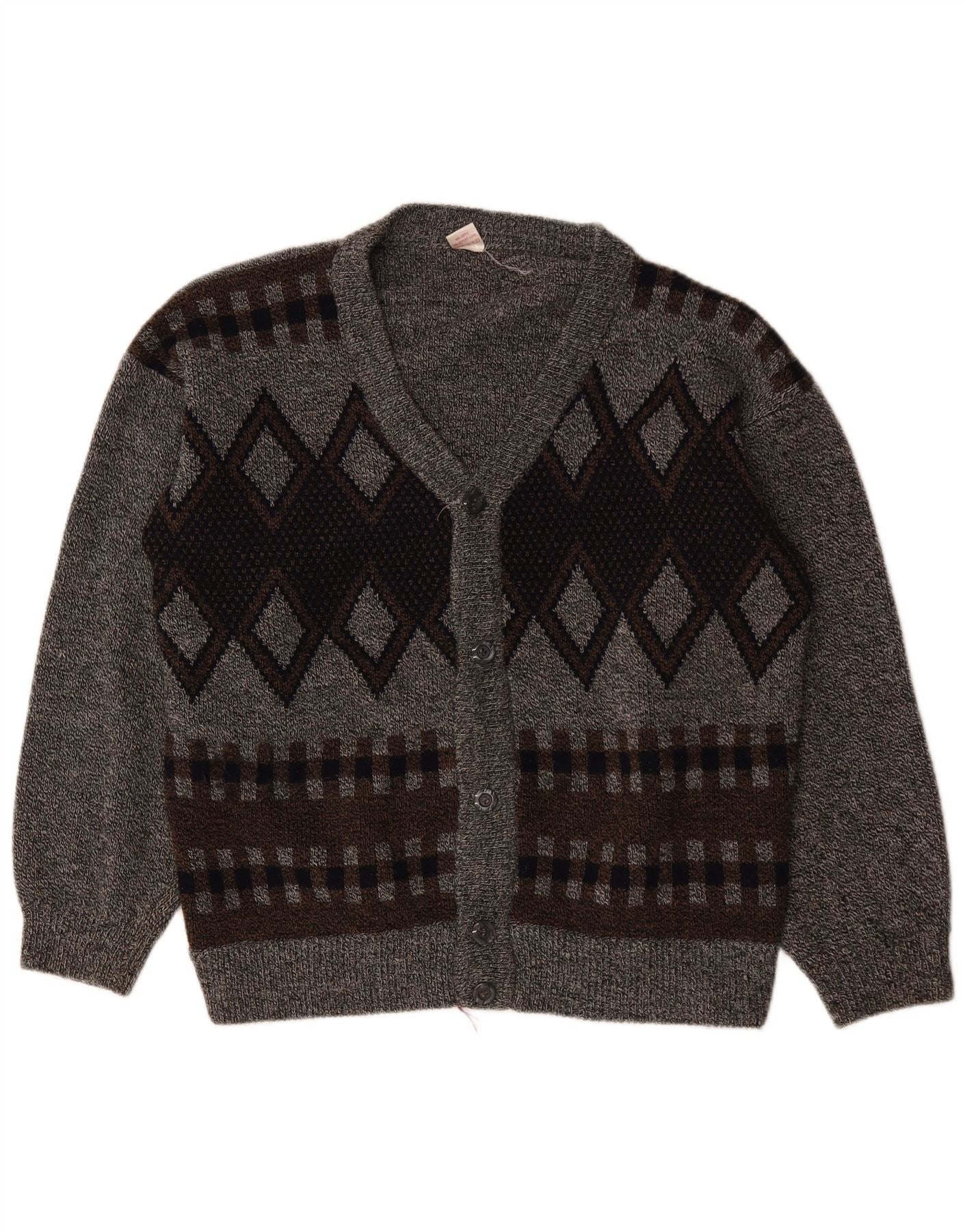 VINTAGE Herre cardigan sweater 2XL Grå Argyle/Diamond Akryl