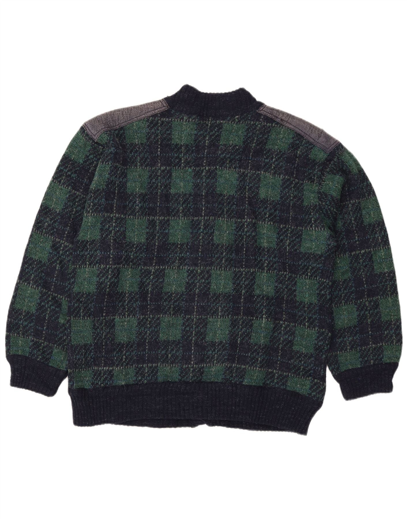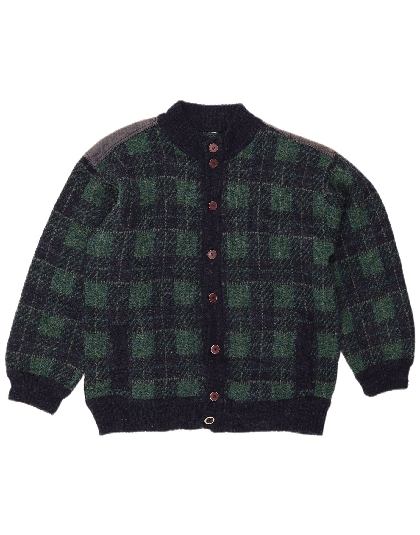 Vintage herre cardigan sweater IT 54 XL marineblå ternet uld